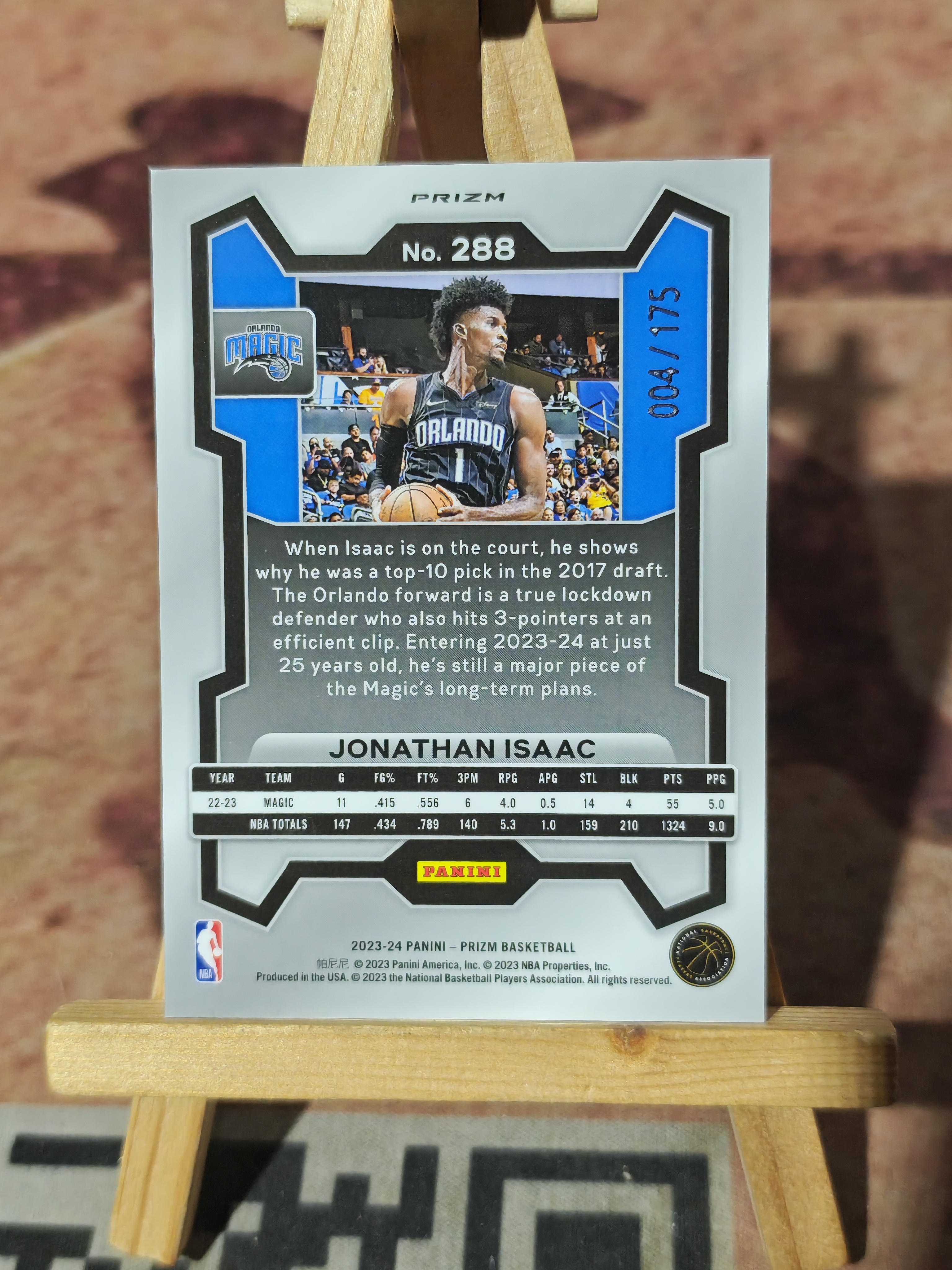 2023-24 Panini Prizm Jonathan Isaac 【科科代卖 鲛公】PZ 乔纳森 艾萨克  白折射 004/175编 魔术队天赋怪  卡品如图 专收必备