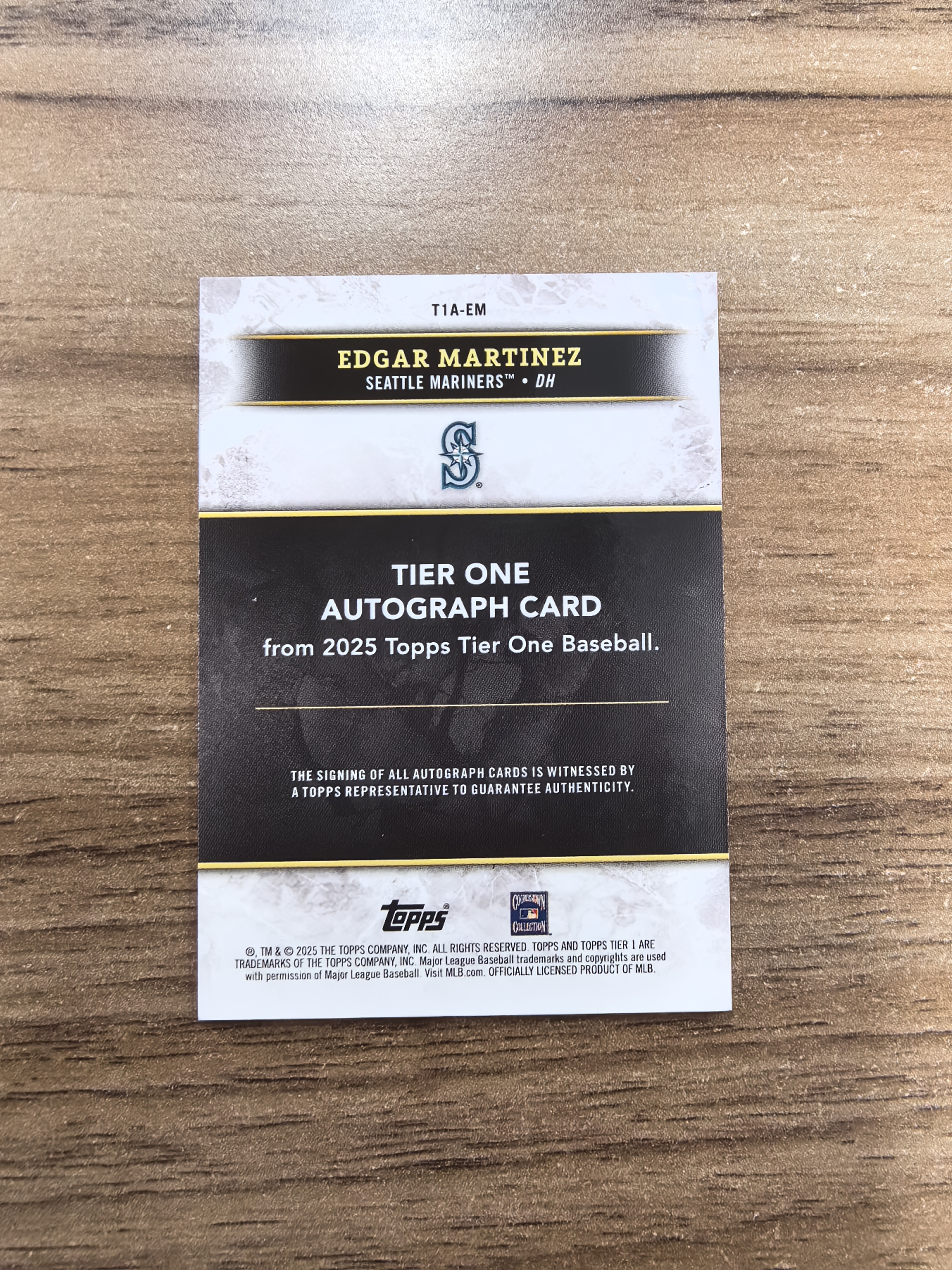 2025 Topps Tier One Edgar Martinez 棒球 西雅图水手队 埃德加马丁内斯 15/25编 签字 卡签 微瑕 实卡精美 卡品如图 收藏必入 流浪