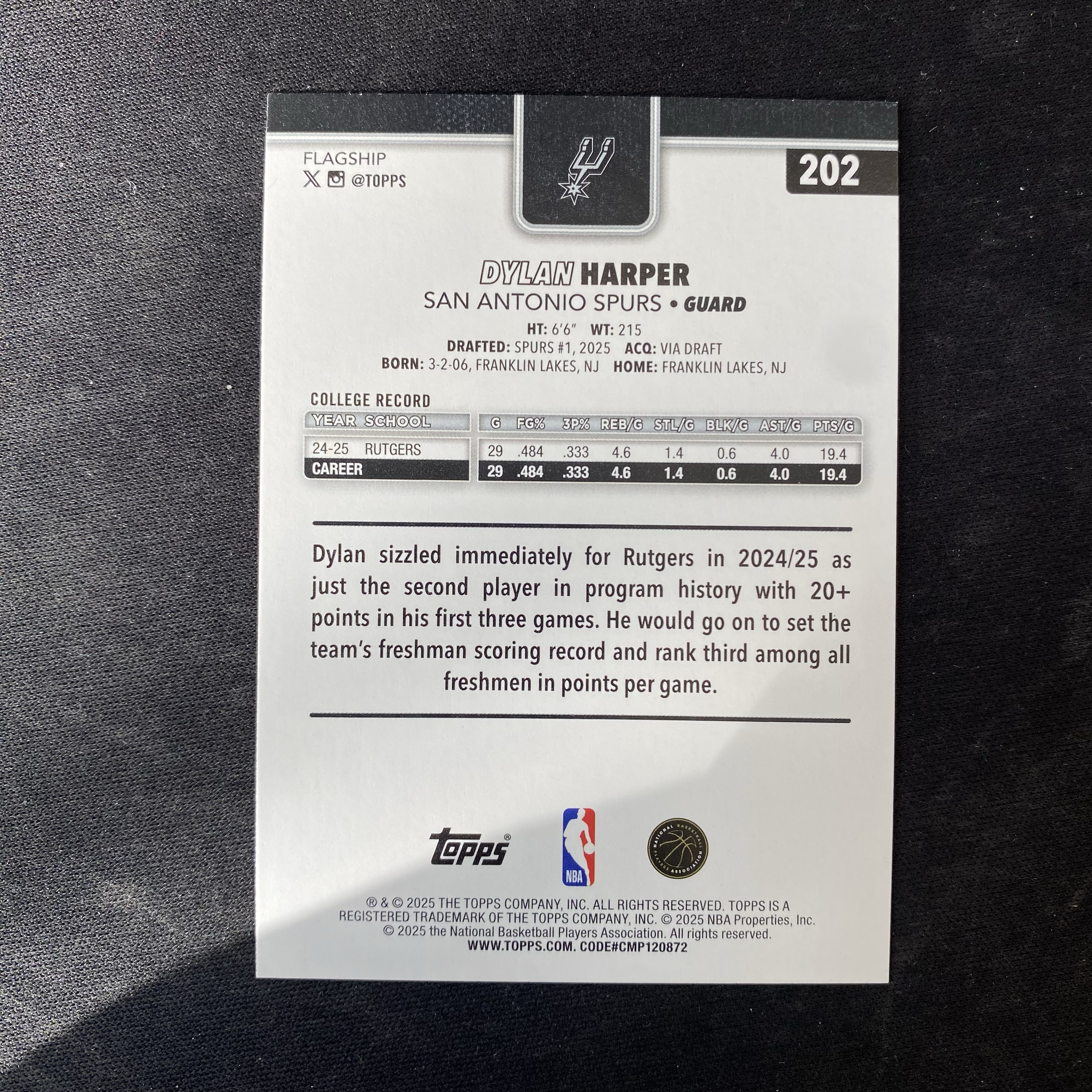 2025 Topps flagship Dylan Harper RC 【星集卡代卖】cyb1119 篮球 迪伦 哈珀 新秀 银折 折射 base