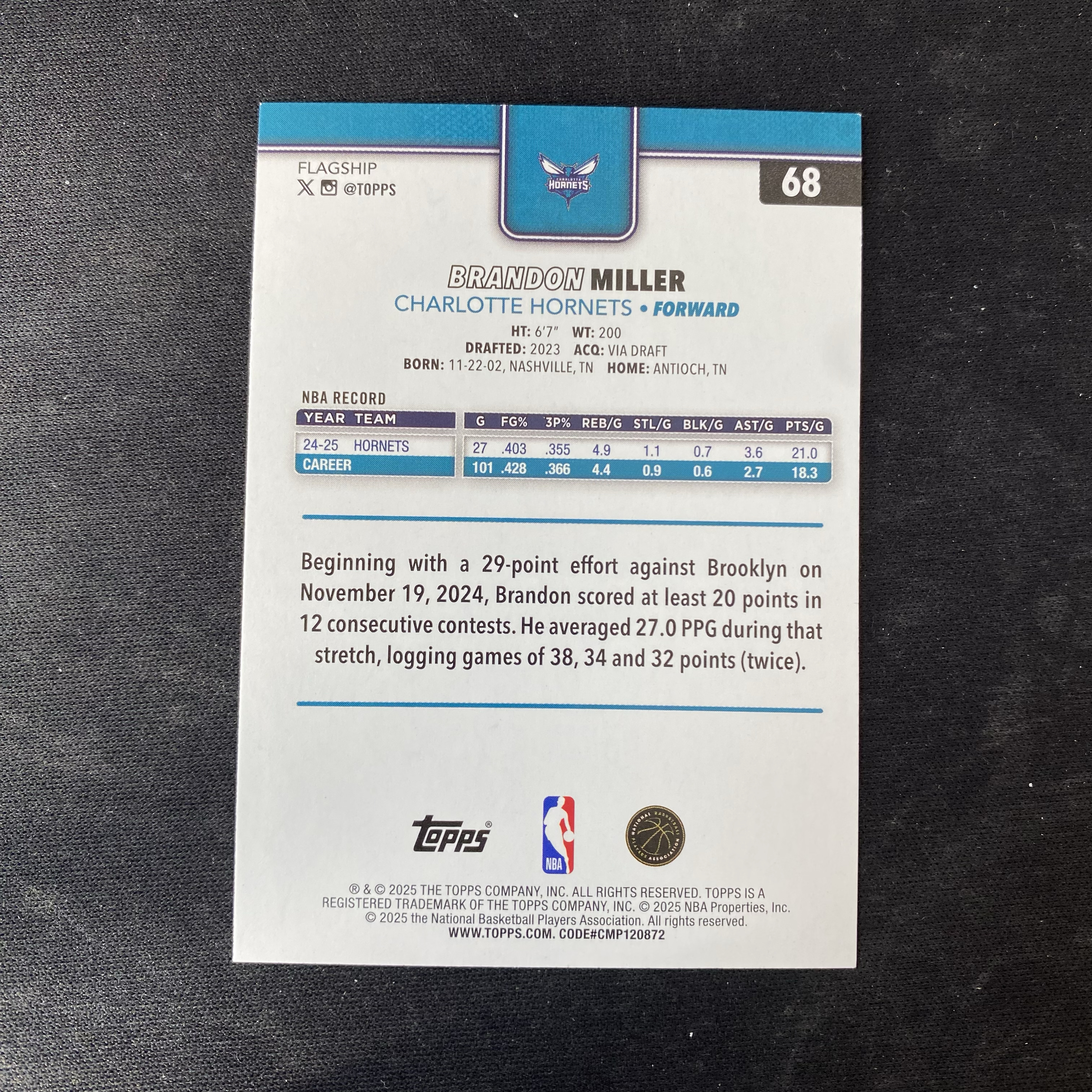 2025 Topps flagship Brandon Miller 【星集卡代卖】cyb1119 篮球 布兰登 米勒 61/68编 黑平行 黄蜂