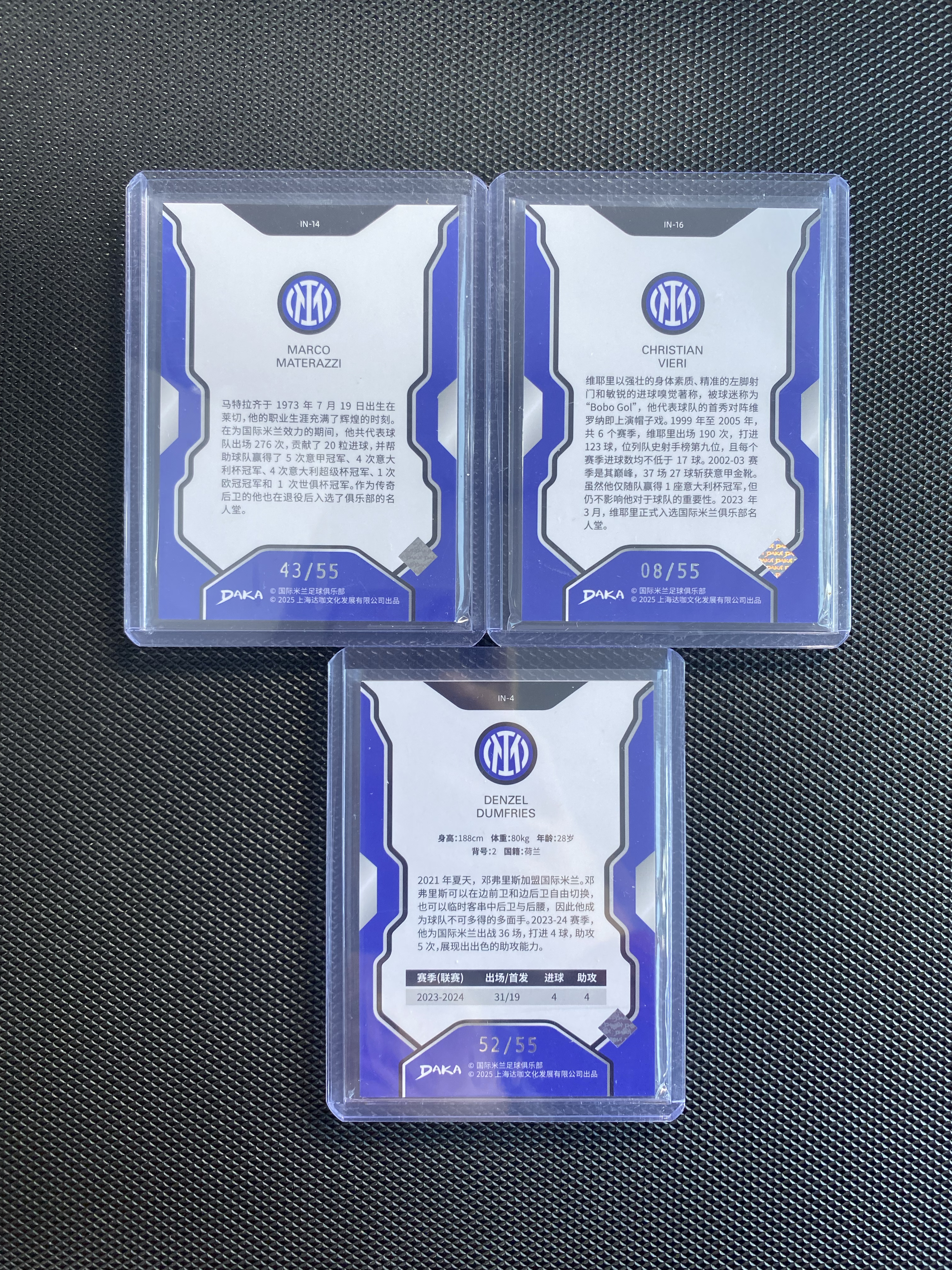 【深情拍卖】2025 DAKA 达咖 国际米兰 马特拉齐 邓弗里斯 克里斯蒂安 维耶里 55编 紫折 3张打包 不保卡品 #js286#