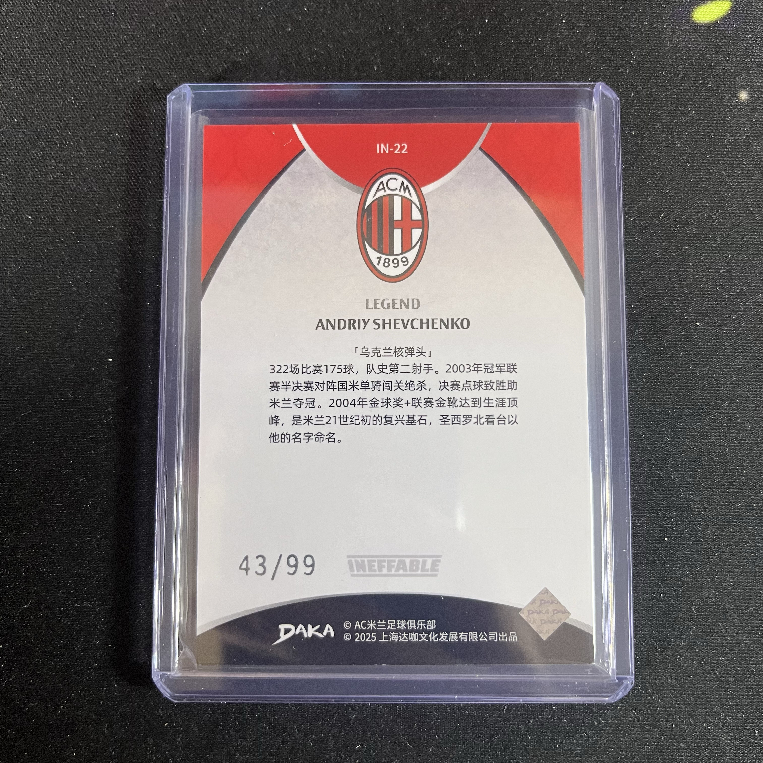 2024-25 DAKA AC米兰 One&Two 队盒 Andriy Shevchenko 舍甫琴科 43/99编 银折 卡品如图 收藏必备【超玩代卖 YLV】