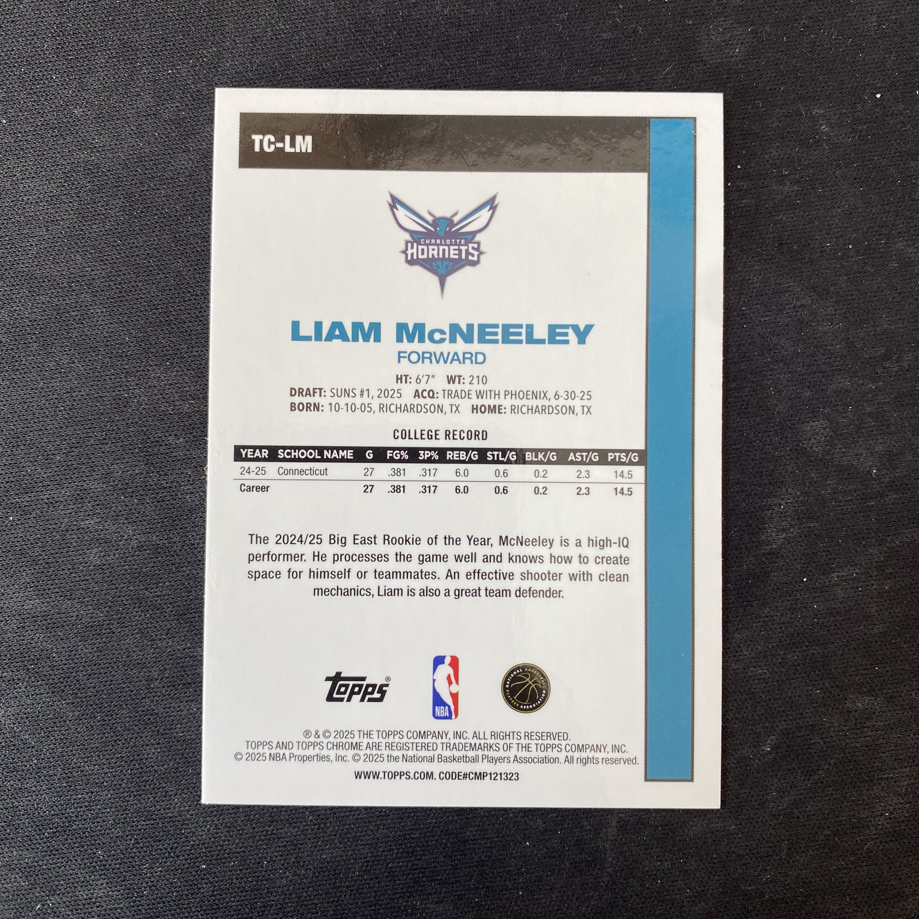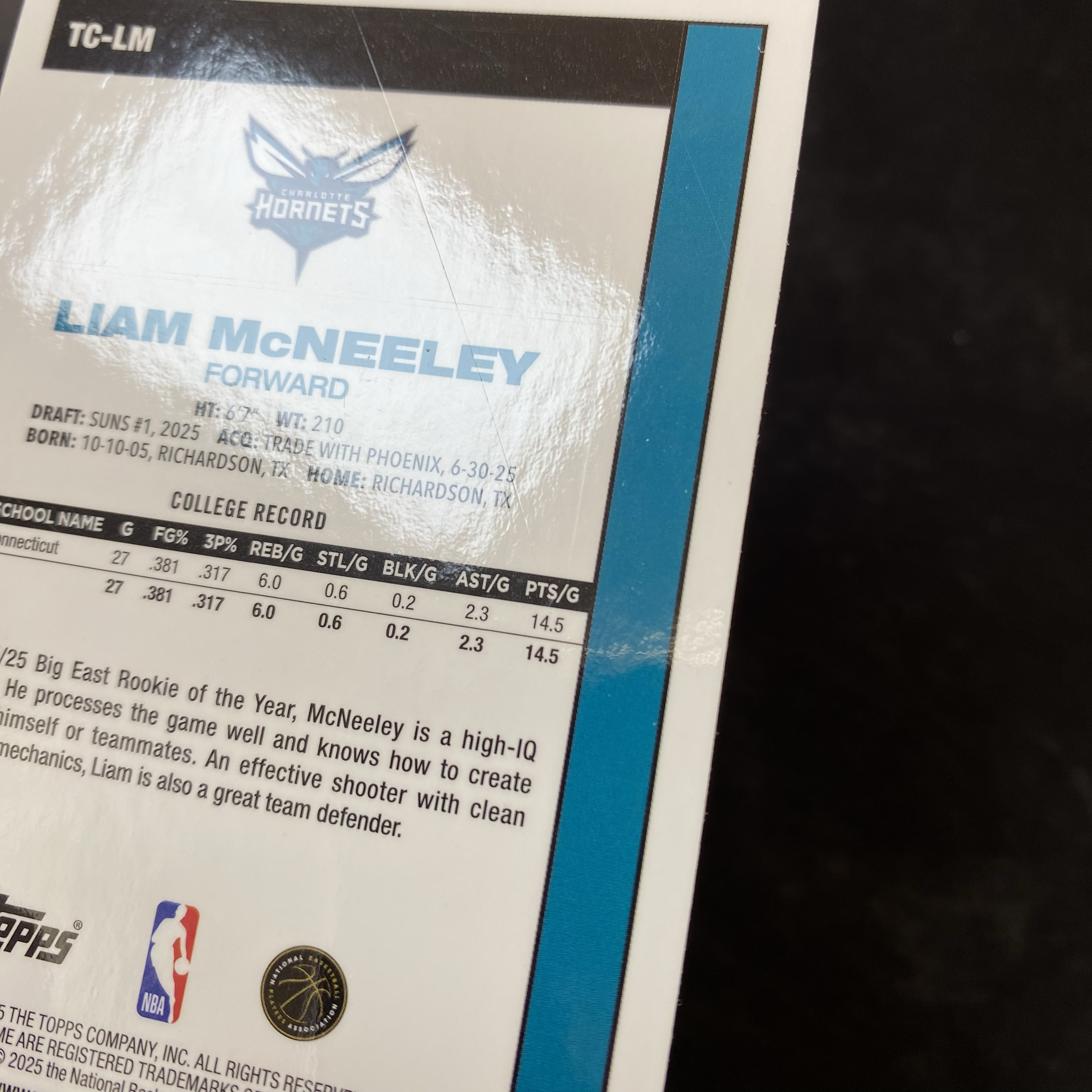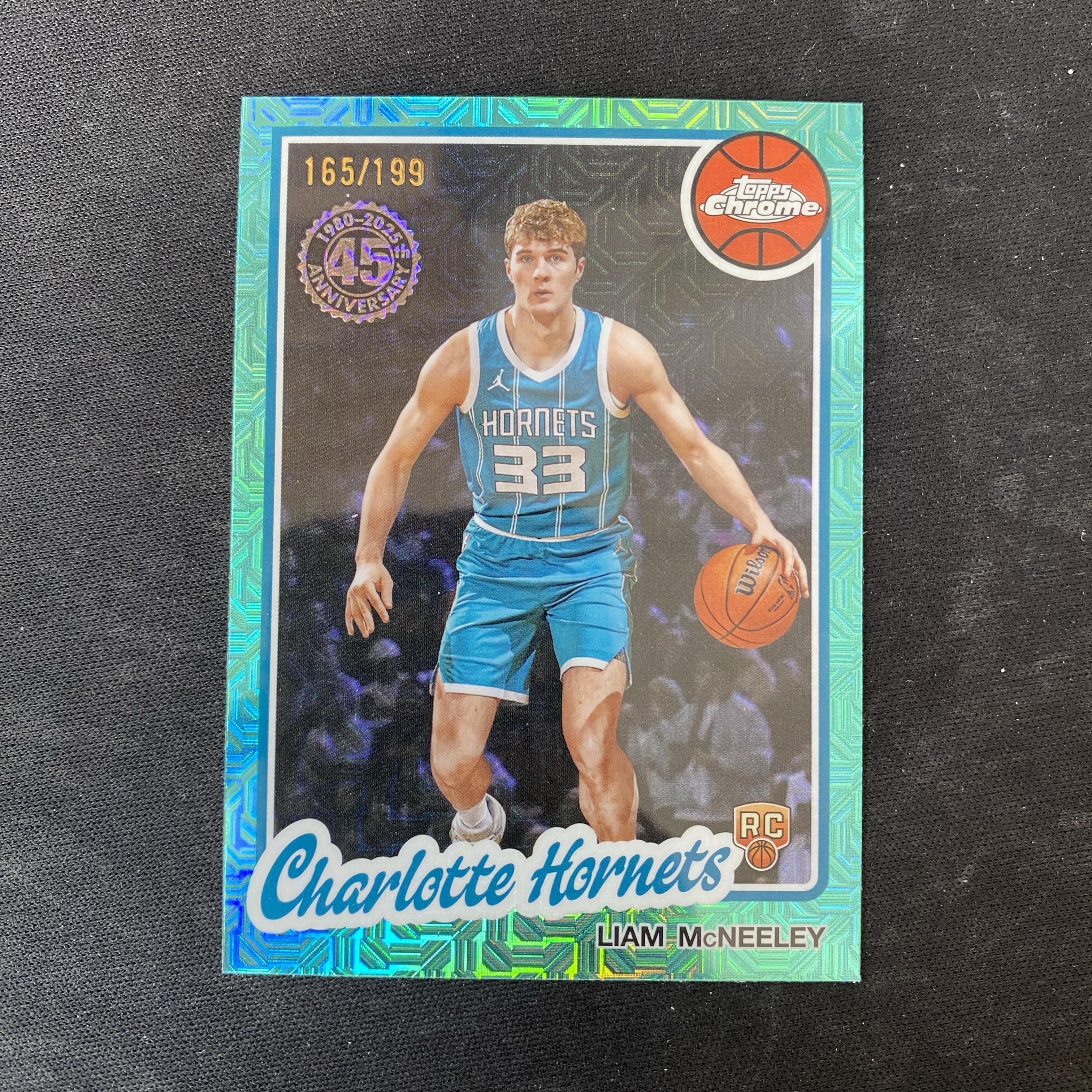 2025 Topps flagship Liam McNeeley RC 【星集卡代卖】cyb1119 篮球 新秀 利亚姆 迈克尼利 黄蜂 45周年 复古特卡 199编 绿mojo折 折射 背面划痕