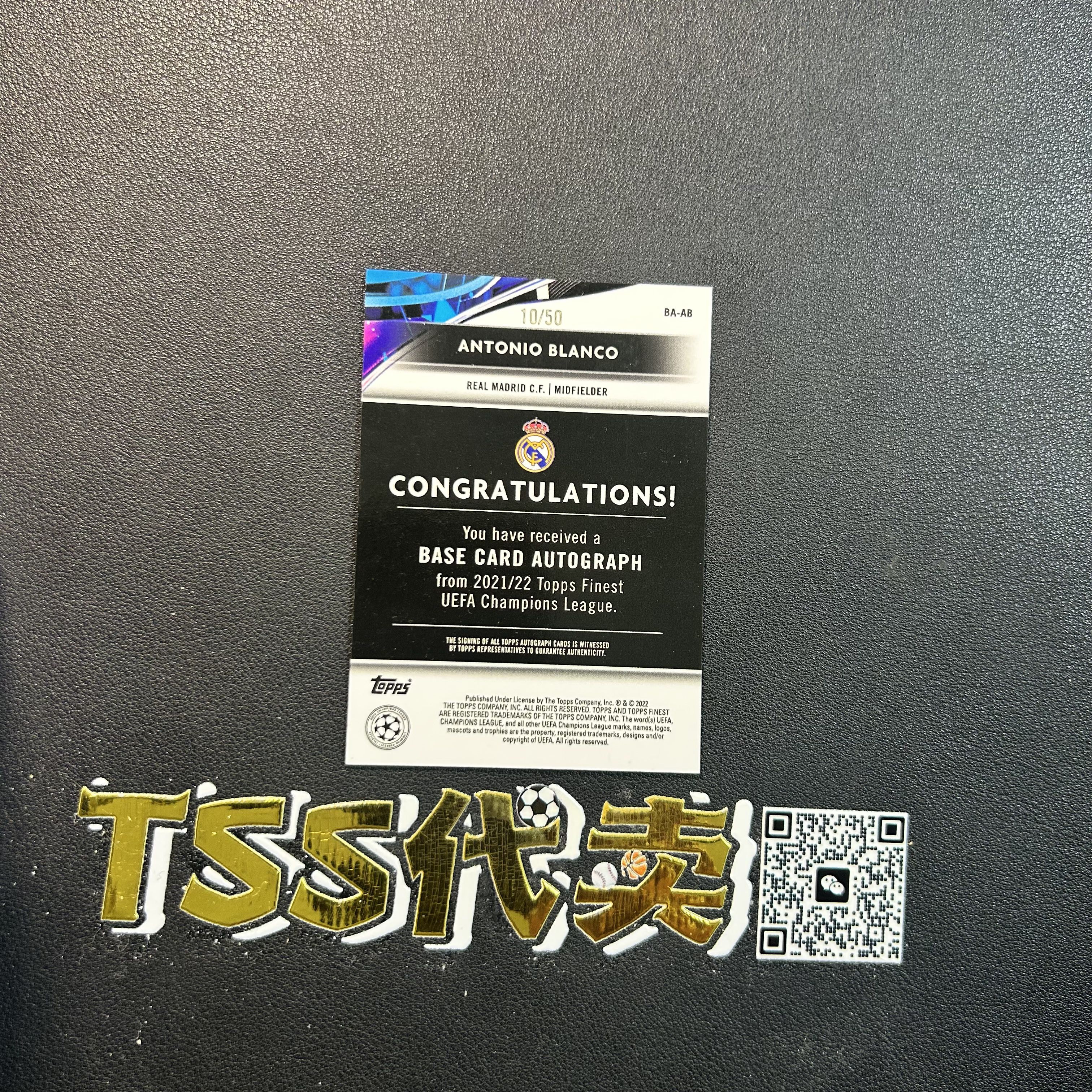 【TSS代卖-预付80%】 2021-22 Topps Finest Antonio Blanco 安东尼奥 布兰科 皇马 欧冠 RC新秀 签字 /50编 金折 JH4585 ZGK21-陳