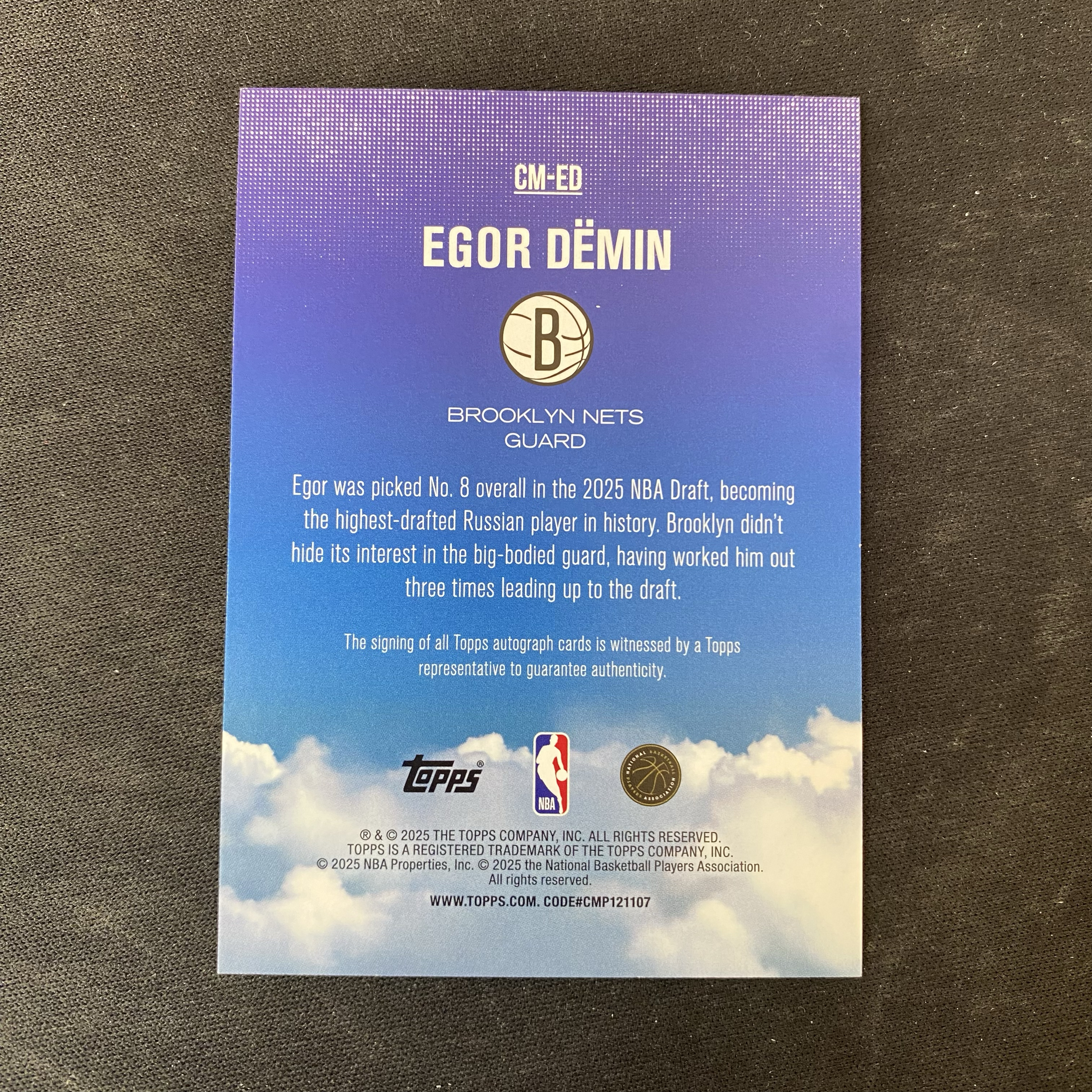 2025-26 Topps flagship Egor Demin RC 【星集卡代卖】cyb1119 篮球 新秀 叶戈尔 杰明 签字 云端签