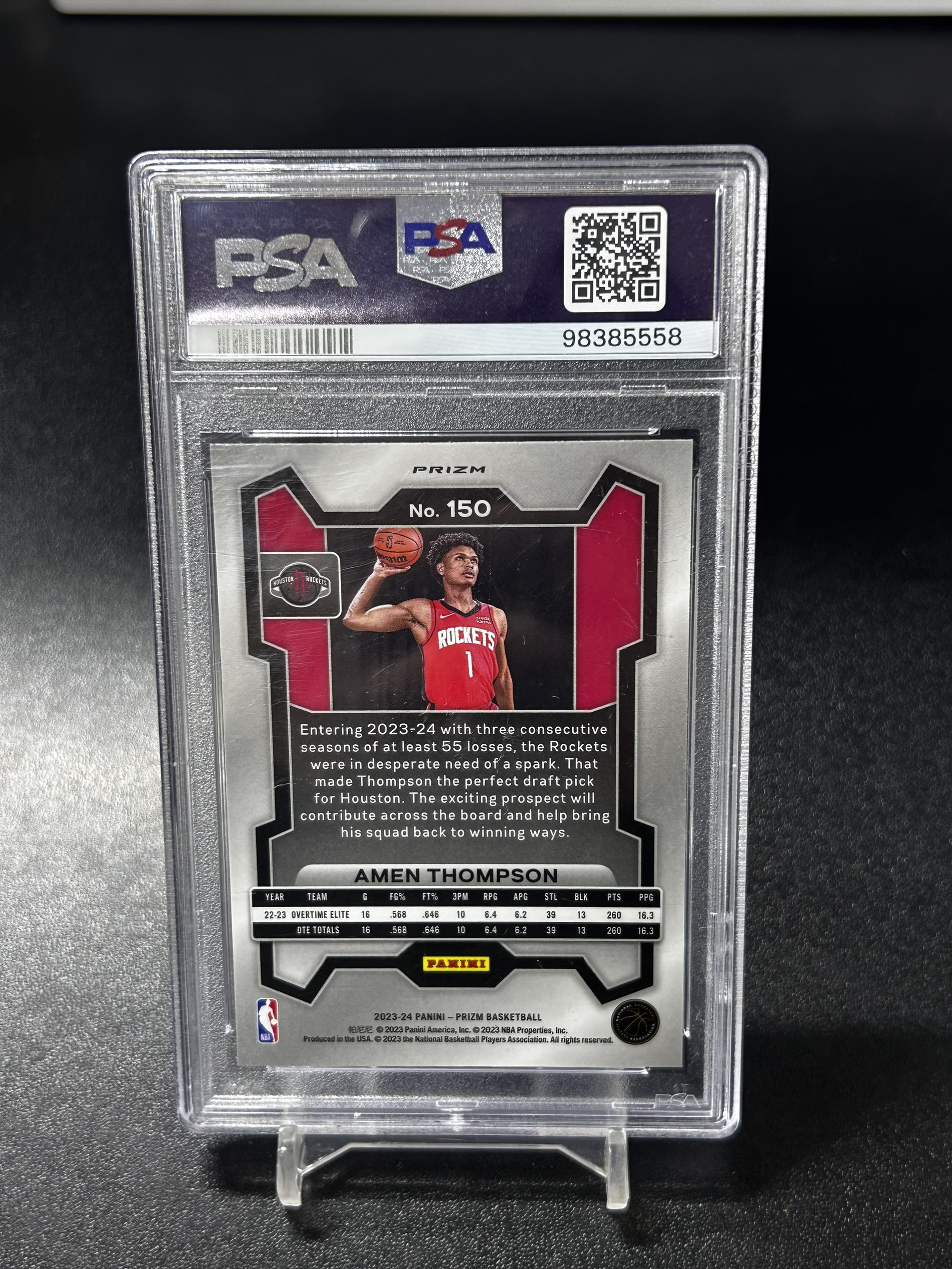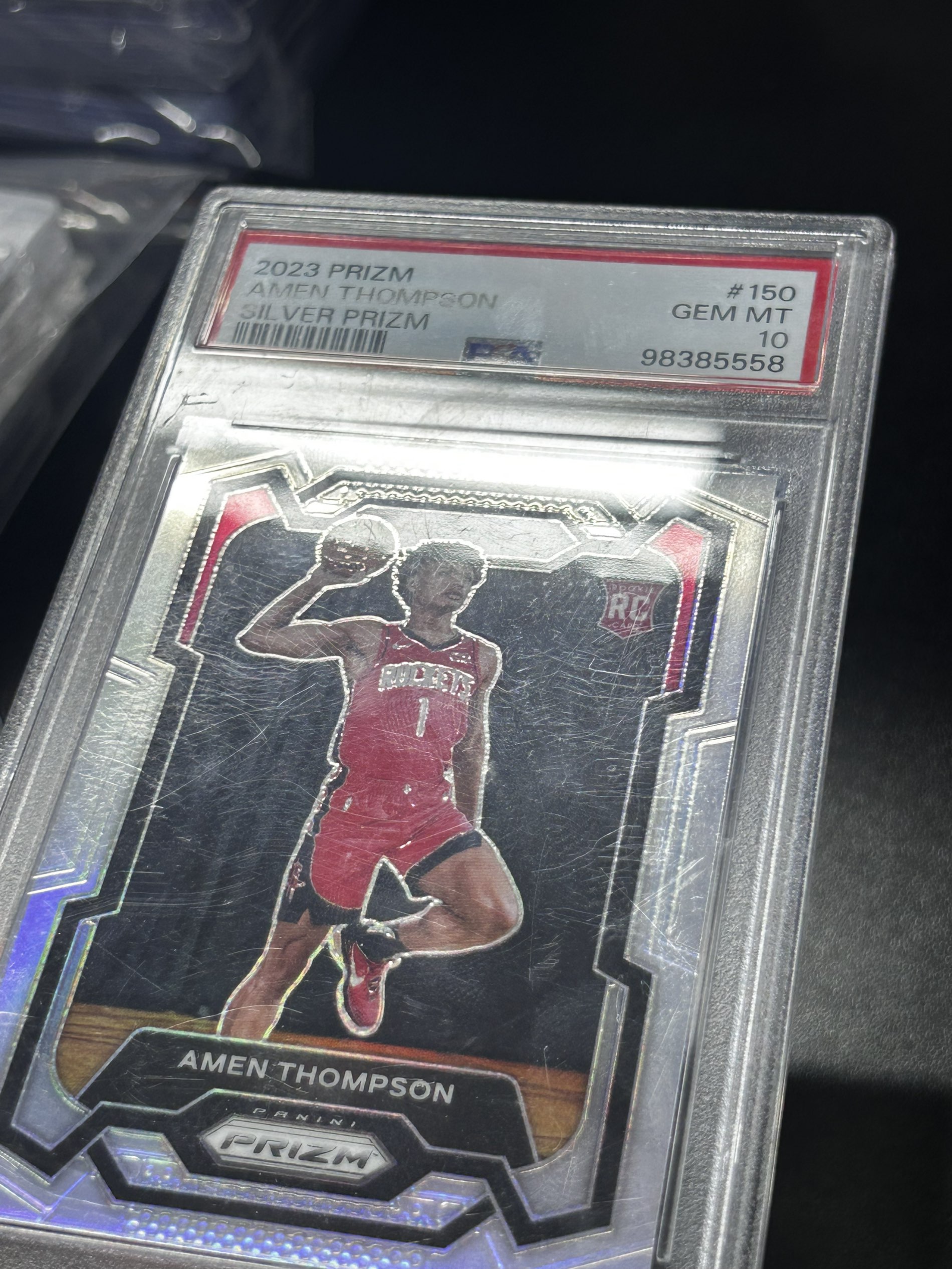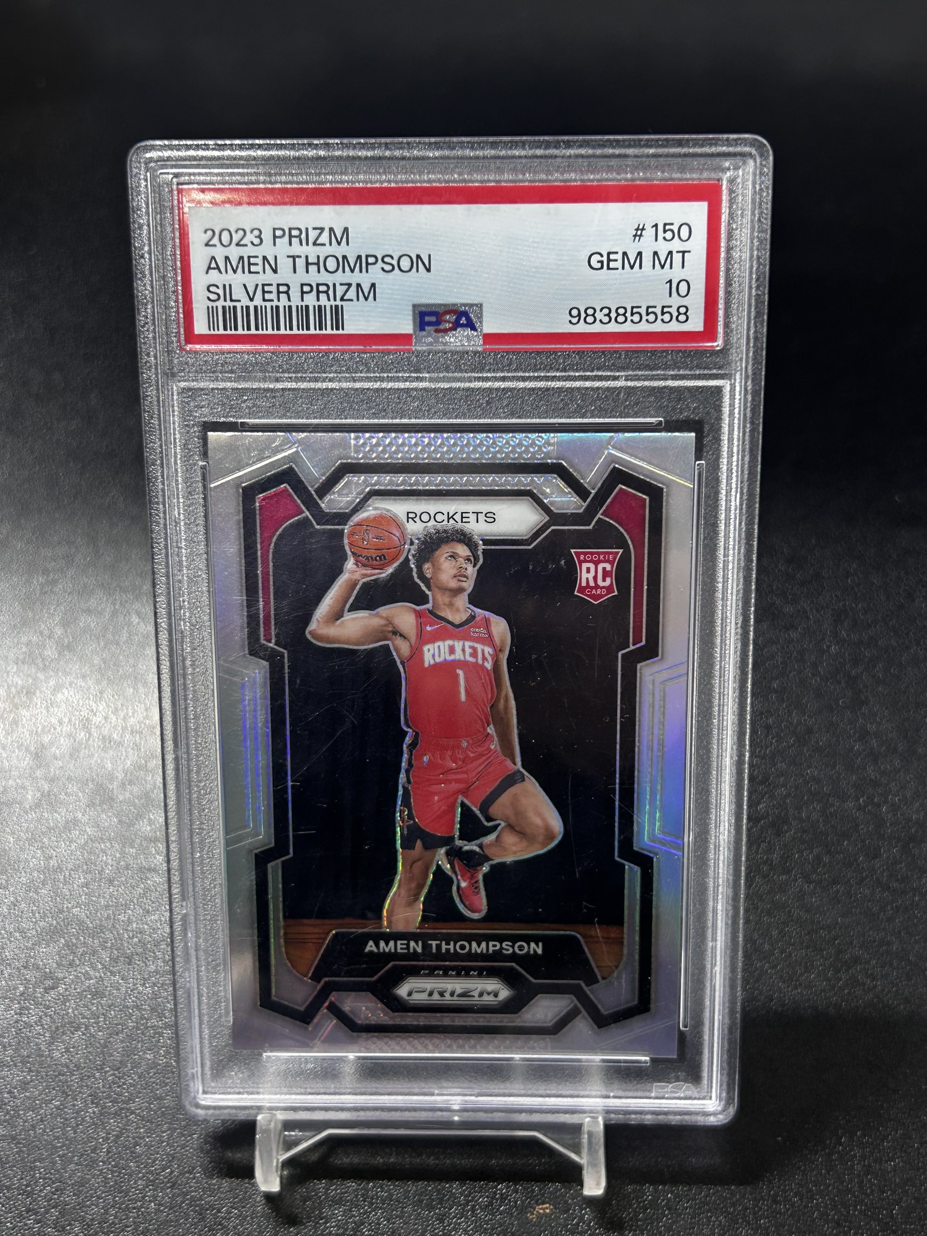 【浩行拍卖 截标预付82%】2023-24 panini prizm amen Thompson 火箭 阿门 汤普森 RC 新秀 银折 折射 PSA10 外壳微瑕 专收必备「橡塑重上」1121張
