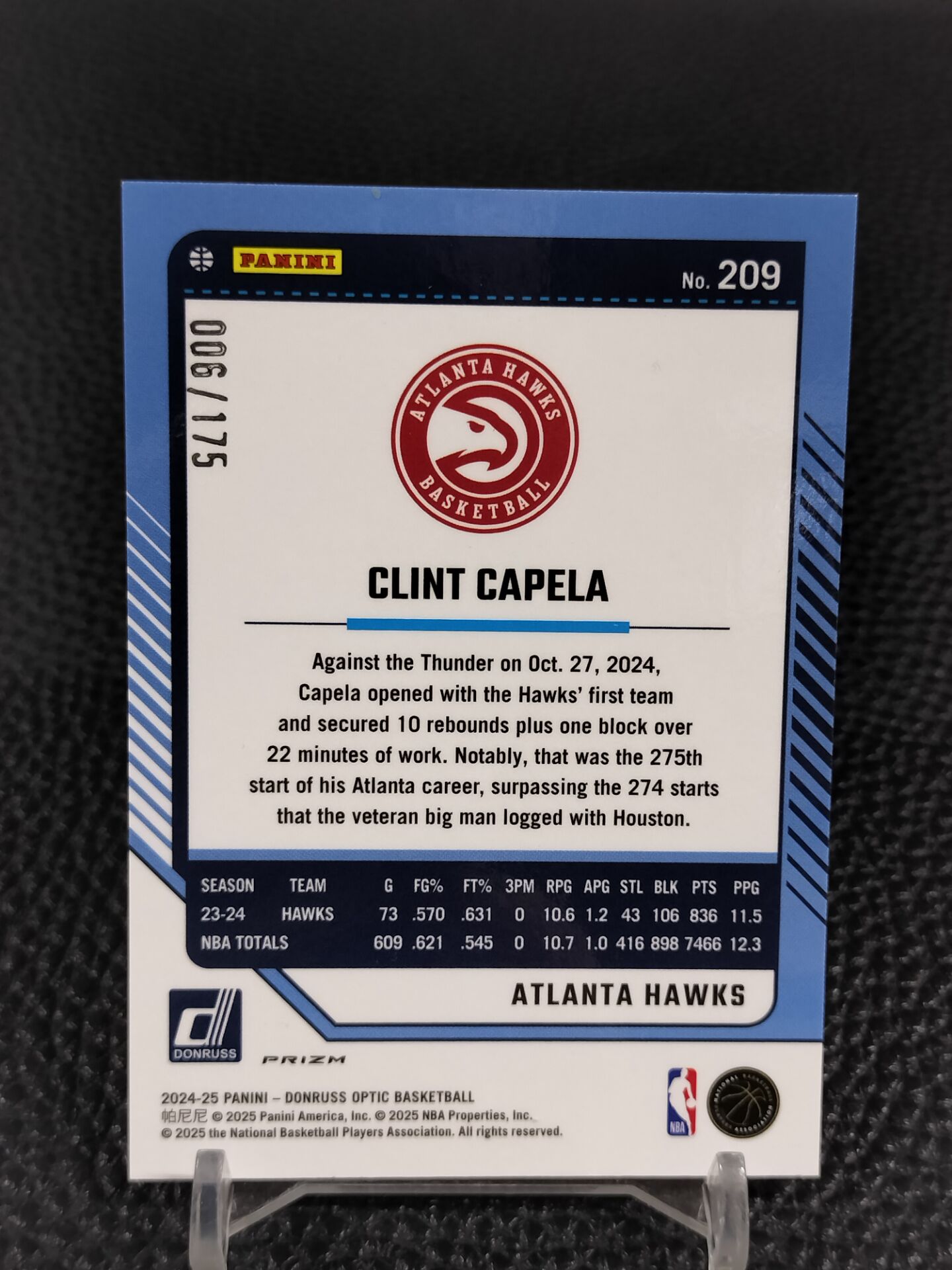 【浩行拍卖 截标预付82%】2024-25 panini donruss optic clint capela 杜蕾斯 老鹰 克林特 卡佩拉 橙折 折射 6/175编 专收必备 瑕疵看图「寻梅」1121h01飛