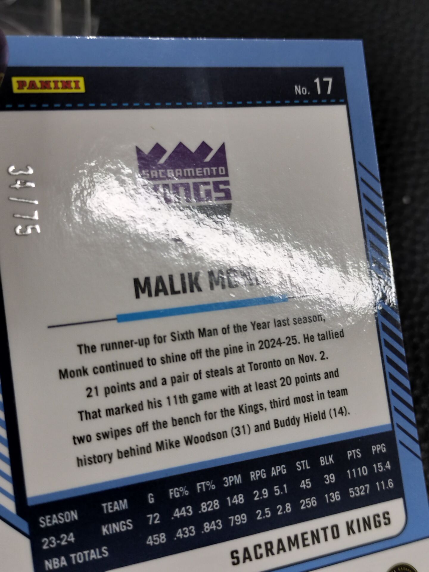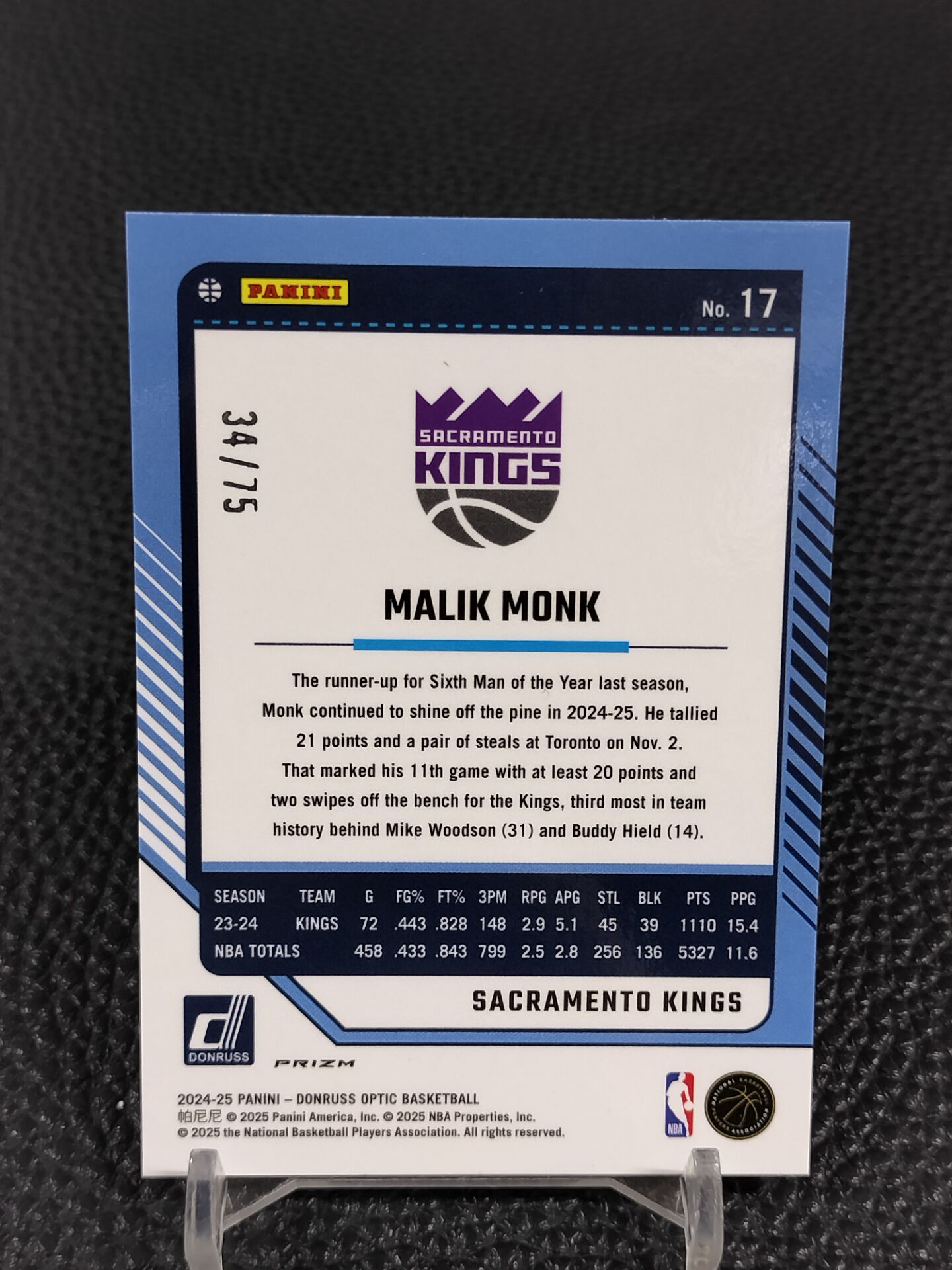 【浩行拍卖 截标预付82%】2024-25 panini donruss optic malik monk 杜蕾斯 国王 马利克 蒙克 爆炸折 电力折 黑金折 圈圈折 折射 34/75编 专收必备 瑕疵看图「寻梅」1121h01飛