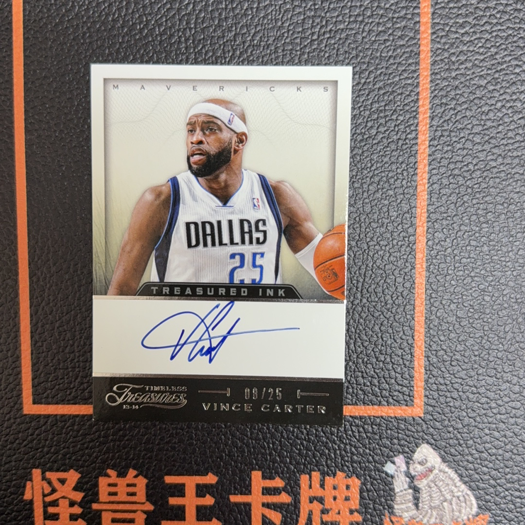 (怪兽拍卖) GSW-G32 2013-14 Panini Timeless Treasures Vince Carter 文斯 卡特 独行侠 小铁盒 8/25编 背号编 签字 卡签 图345微瑕