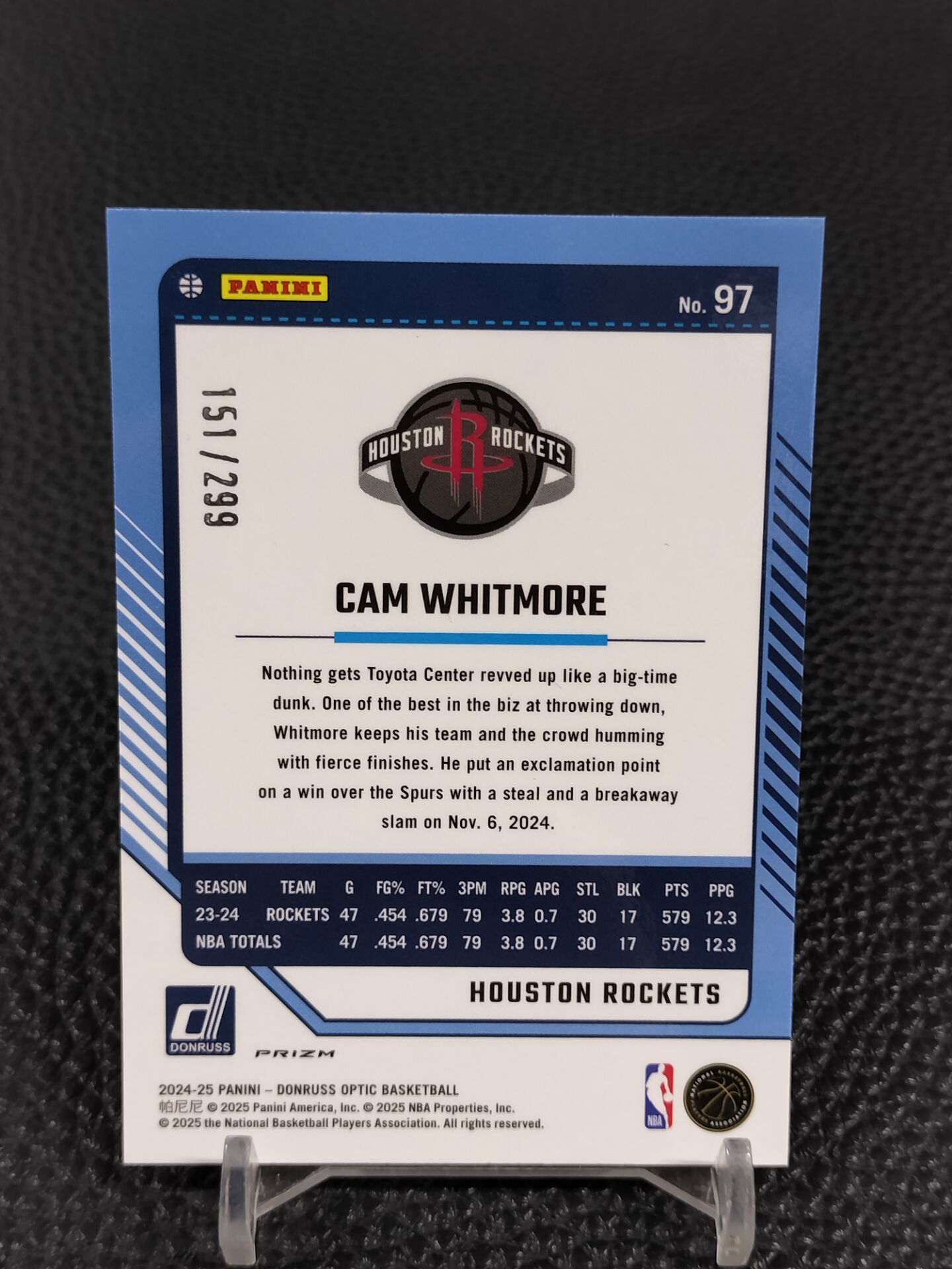 【浩行拍卖 截标预付82%】2024-25 panini donruss optic cam whitmore 杜蕾斯 火箭 卡姆 惠特摩尔 橙龙鳞折 折射 151/299编 专收必备 瑕疵看图「寻梅」1121h01飛