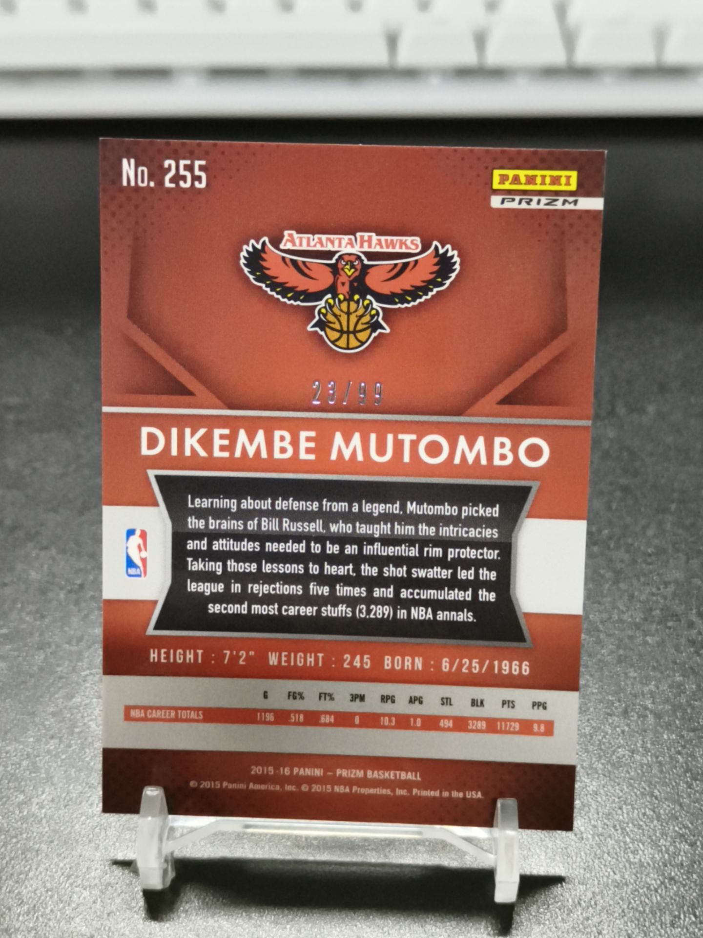 【浩行拍卖 截标预付82%】2015-16 panini prizm dikembe mutombo 老鹰 穆托姆博 穆大叔 紫折 折射 23/99编 瑕疵看图 专收必备「刻本」1121K03劉