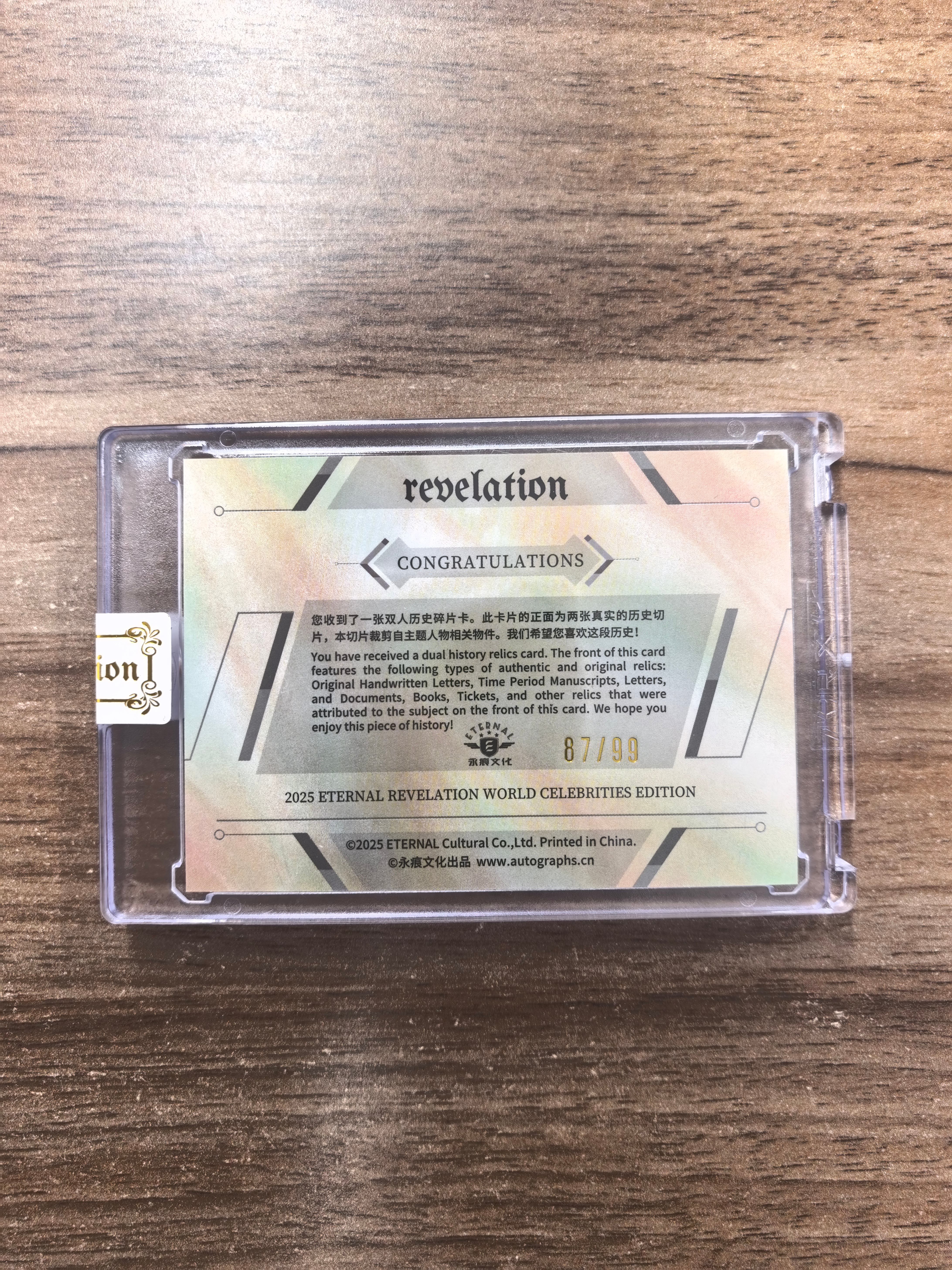 2025 永恒文化 永痕启示录 世界名人收藏卡 真实历史遗物卡 爱因斯坦-奥本海默 87/99编 双人主题人物相关物件 历史碎片卡 原封转 实卡精美 卡品如图 流浪