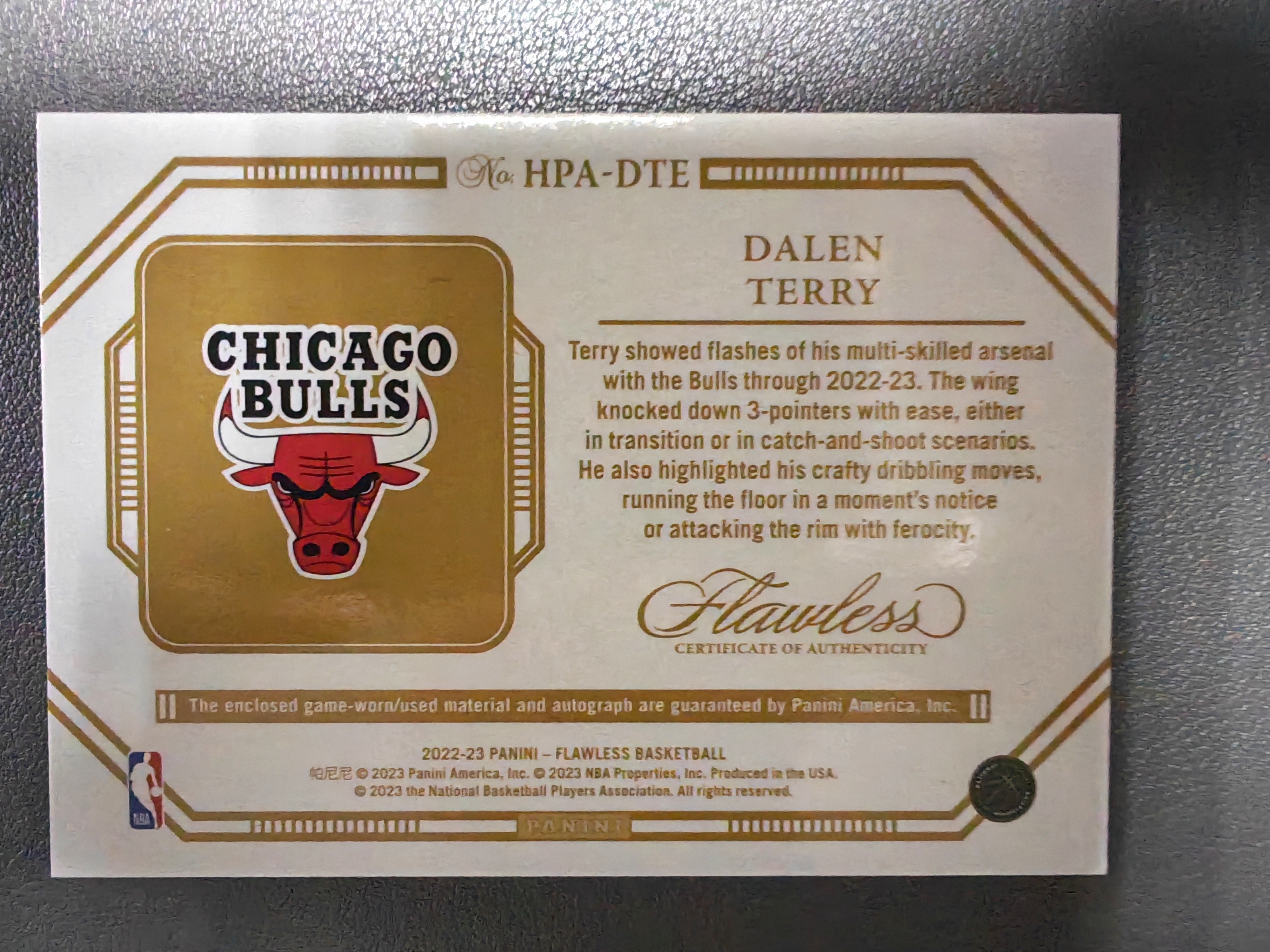 2022-23 Panini Flawless Dalen Terry RC 达伦 特里 手提 RPA HPA 字母切割patch 5编 低编 绿版 新秀年 签字 卡签 收藏必备 公牛队微瑕如图(鲁昔)