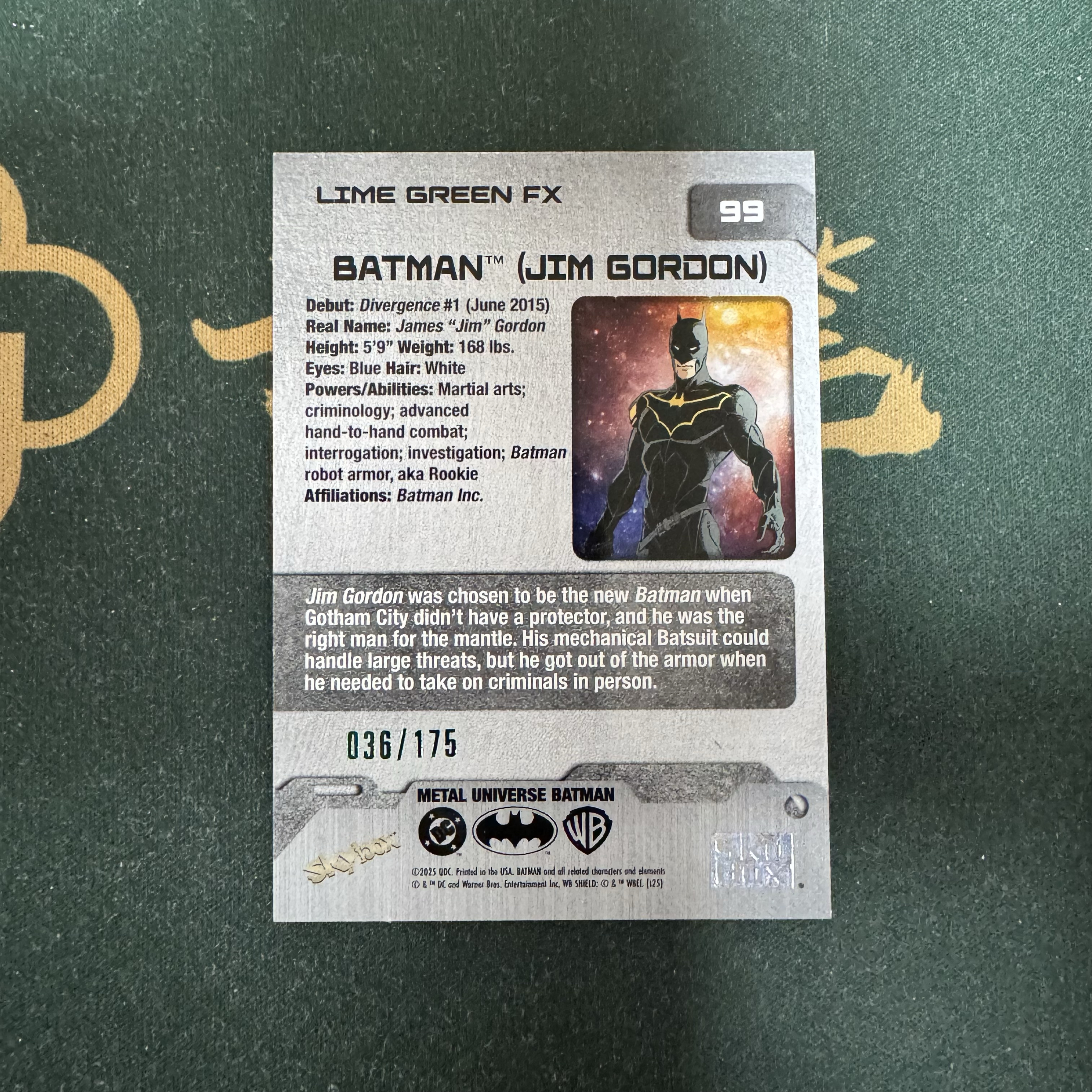 2025 SkyBox Batman 蝙蝠侠 【十三笔】元年DC Metal Universe #99 Batman (Jim Gordon) 蝙蝠侠(吉姆·戈登) 175编 绿平行 卡品如图(YY)