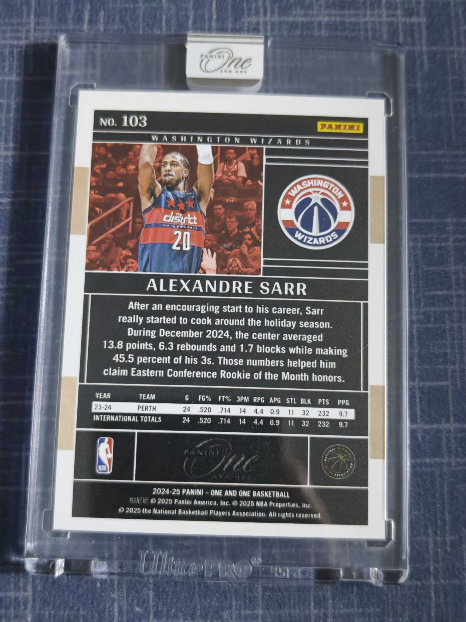 2024-25 Panini One and One Alex Sarr RC 【小灰机】奇才 亚历克斯 萨尔 新秀RC 紫折 05/25编 原封砖 唐傲