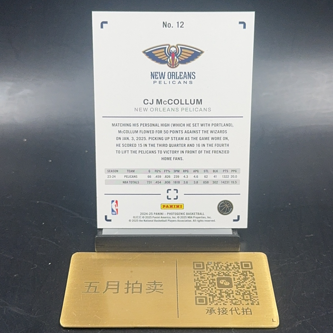 2024-25 Panini Photogenic CJ McCollum 【五月拍卖 顺丰空运】上镜 鹈鹕 cj 麦科勒姆 折射 金折 10编 卡品如图 大王q16