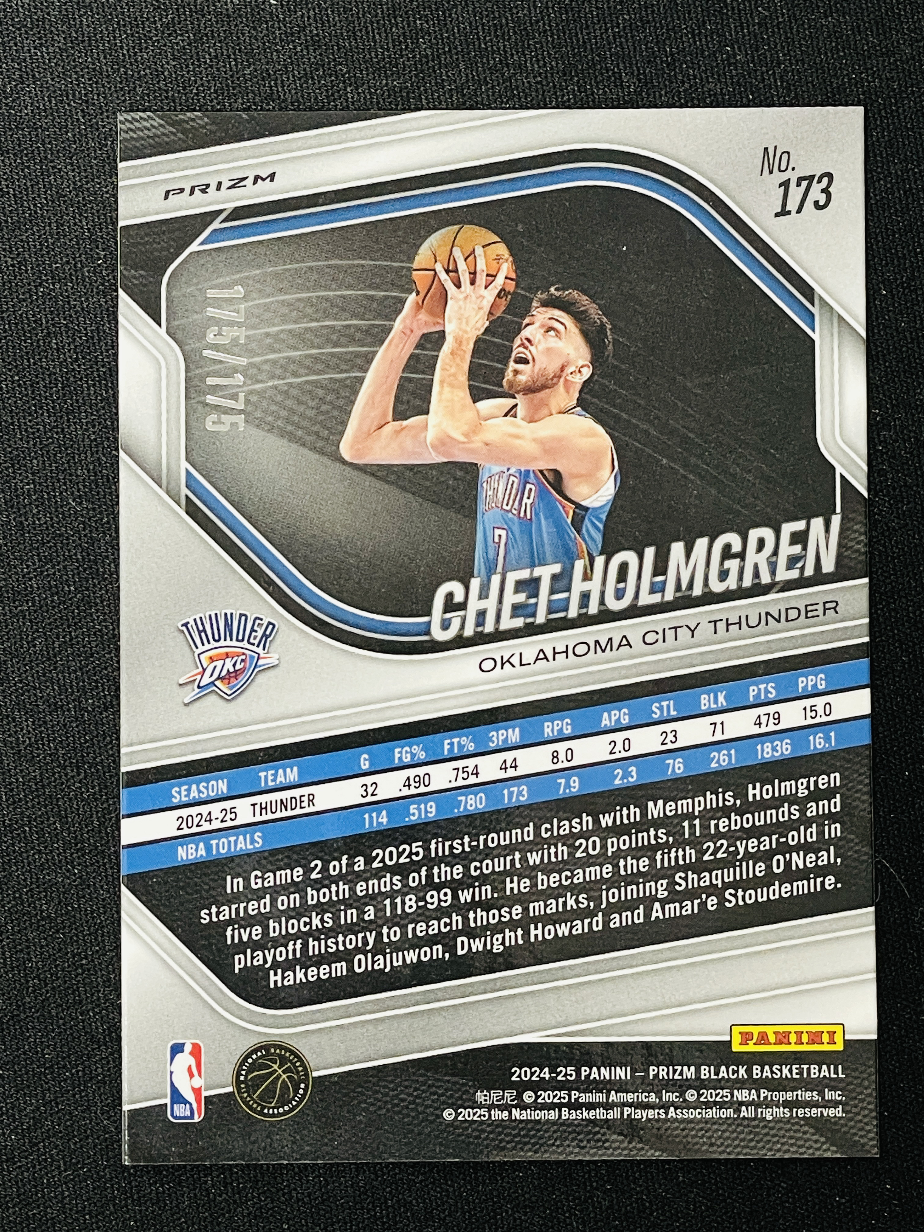 2024-25 Panini Prizm Chet Holmgren 【飞飞代卖】雷霆 切特 霍姆格伦 black 白折 175/175编 尾编 折射 专收凑套必备