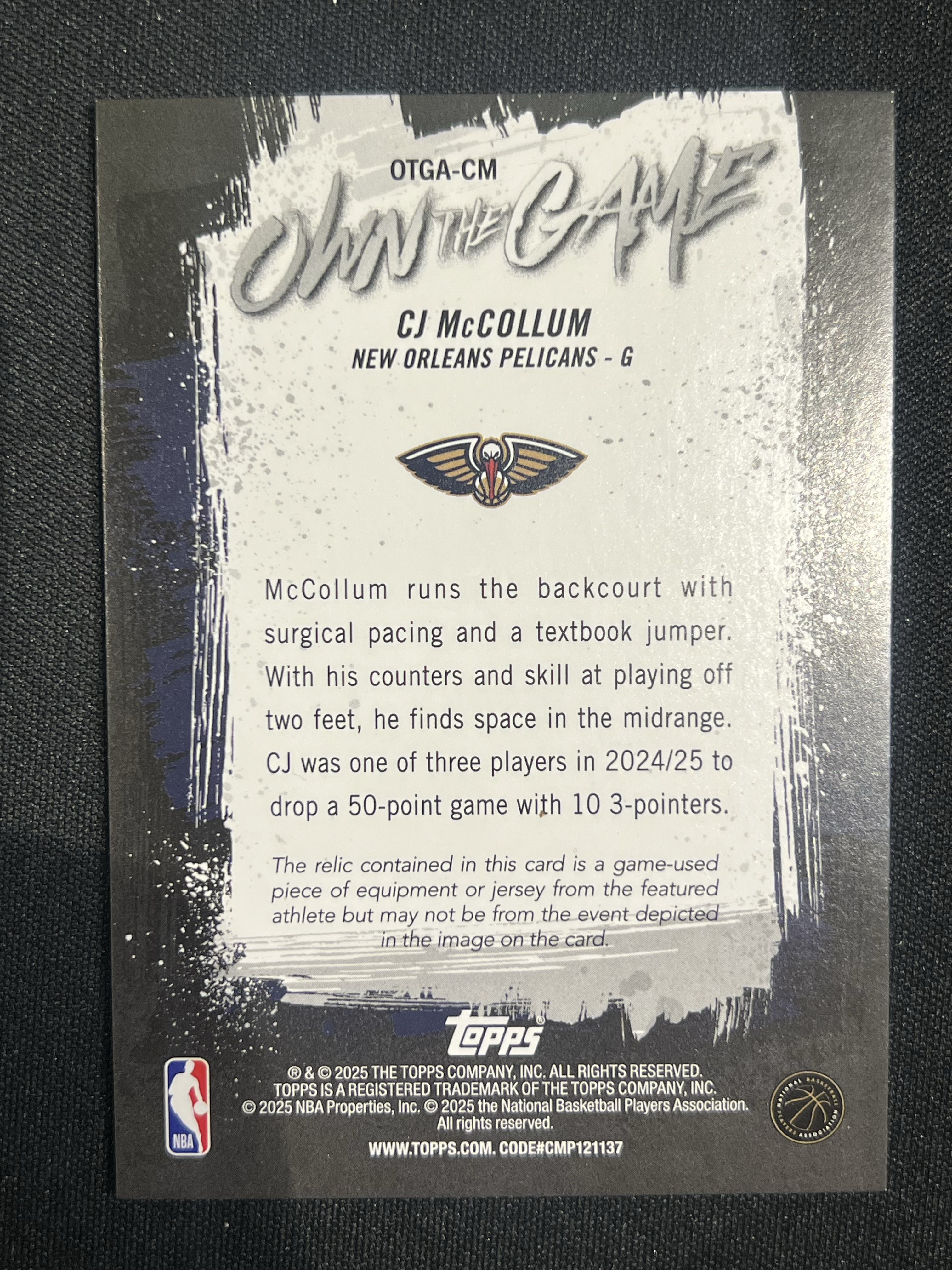 【卡卡星拍卖】2025-26 Topps FLAGSHIP CJ McCollum 鹈鹕 CJ 麦科勒姆 球衣物料切割 pacth 卡品如图 武