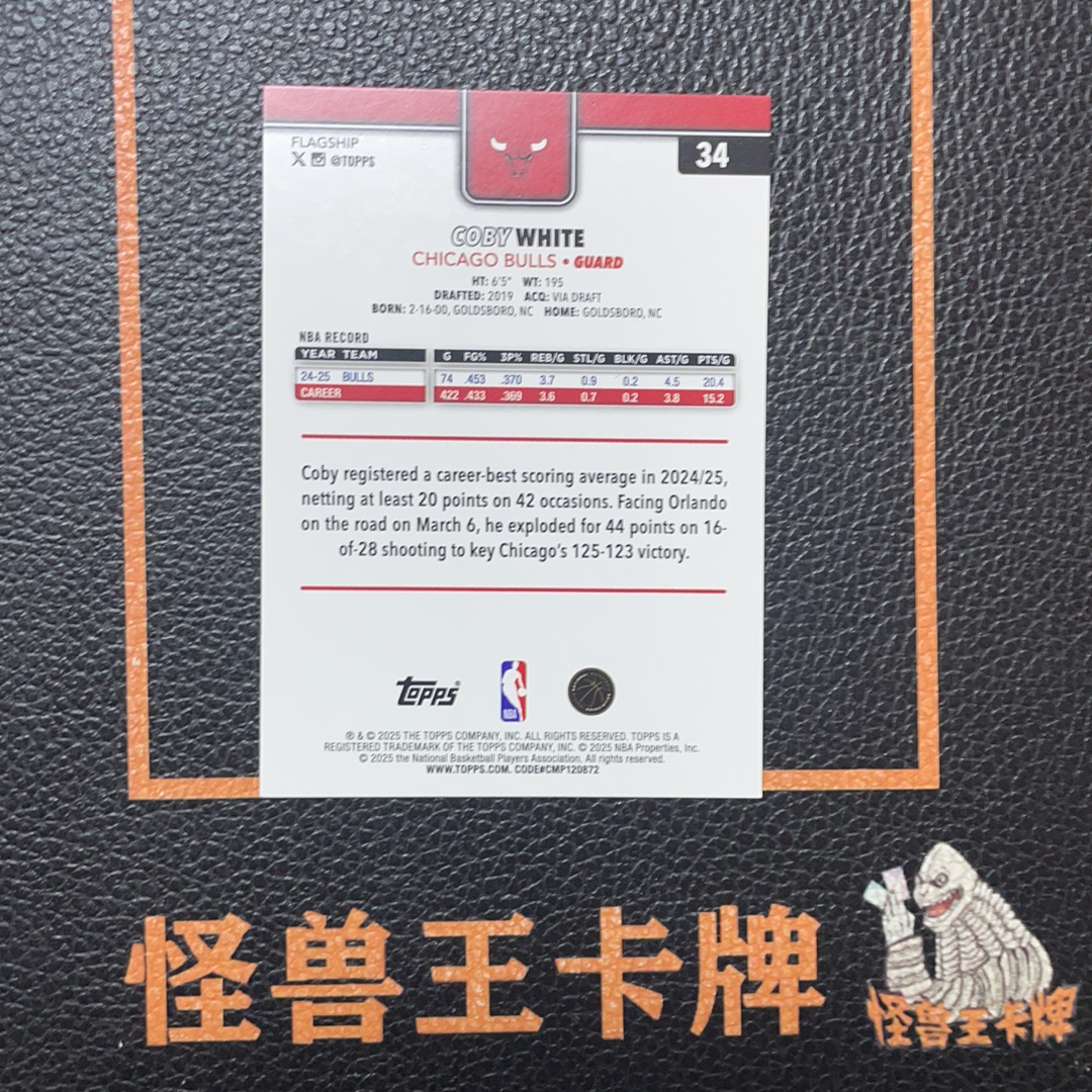 (怪兽拍卖) GSW-E80 2025 Topps Flagship Coby White 公牛 科比 怀特 99/99编 炸弹编 绿折