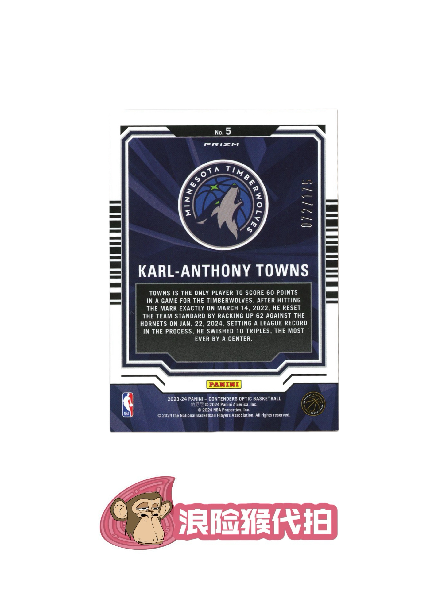 【浪险猴🐒代拍】2023-24 Panini Contenders Optic Karl Anthony Towns 球票 卡尔安东尼唐斯 62数据特卡 红碎冰折 072/175编 森林狼 黎明