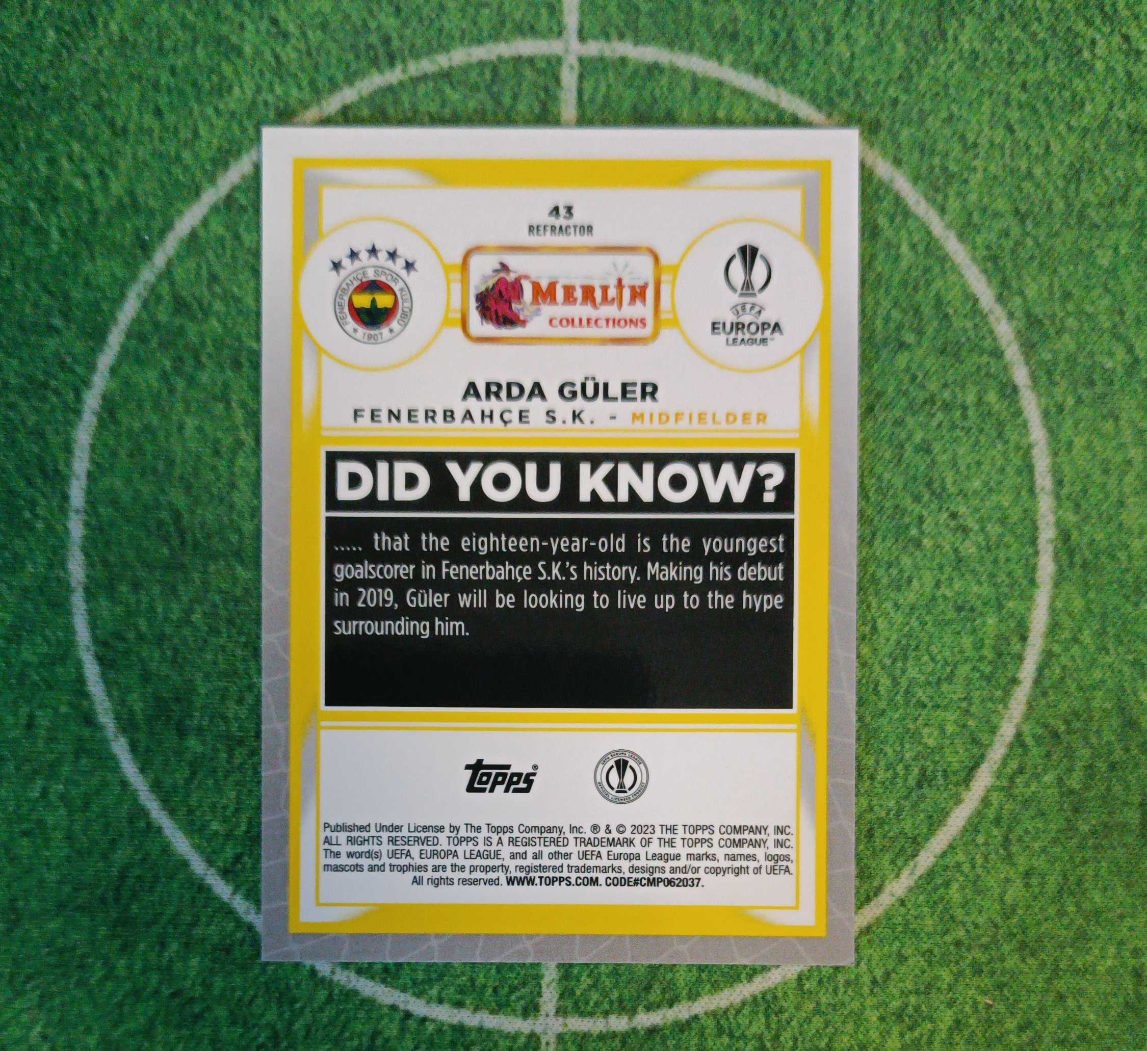 2023 Topps Merlin Arda Güler RC 梅林 新秀RC 费内巴切 居莱尔 银折 折射 皇家马德里 土耳其🇹🇷 状态火热 卡品如图