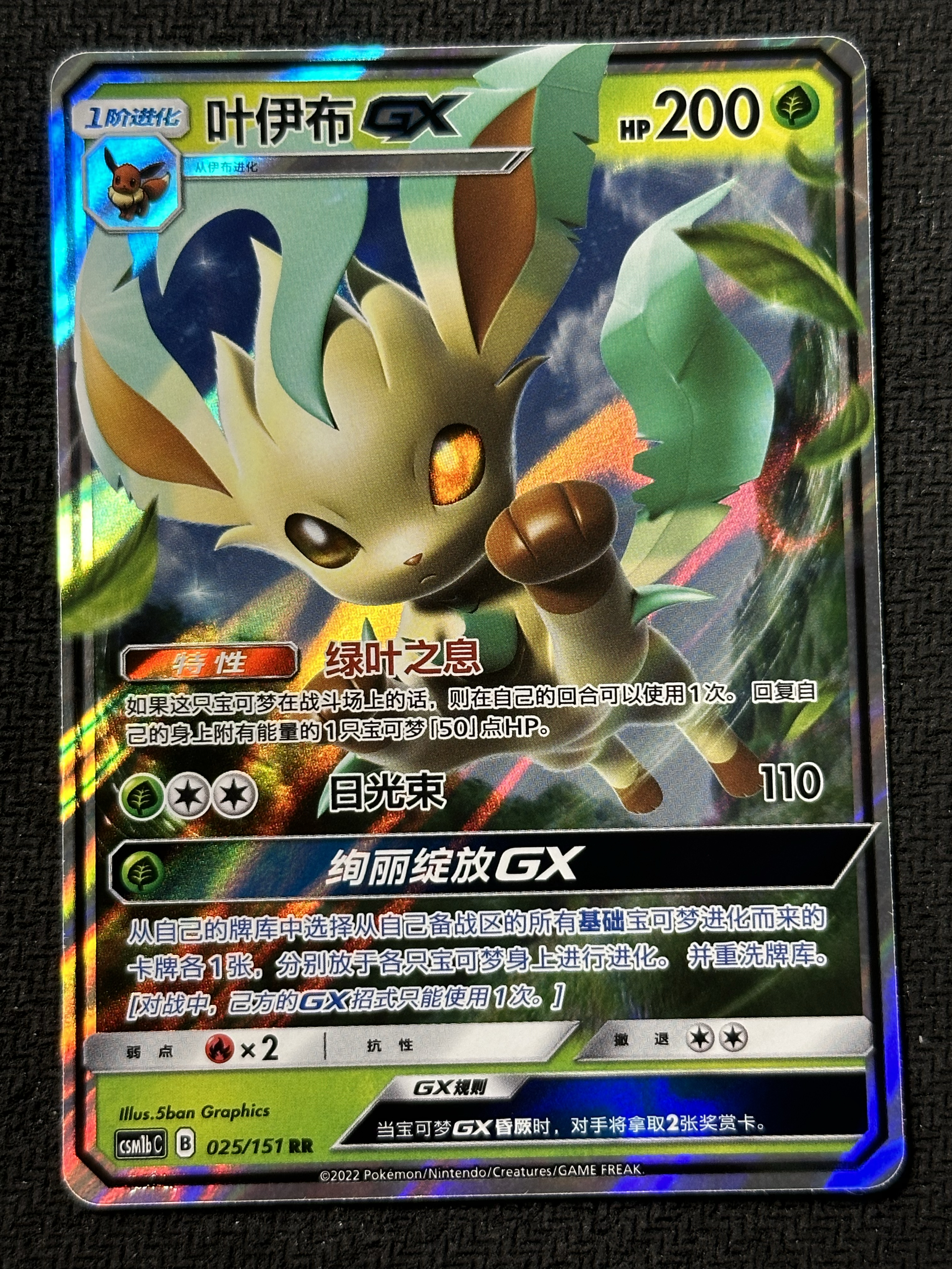 2024 Pokemon TCG 太阳&月亮 横空出世 苍 叶伊布GX chs RR 流通品相