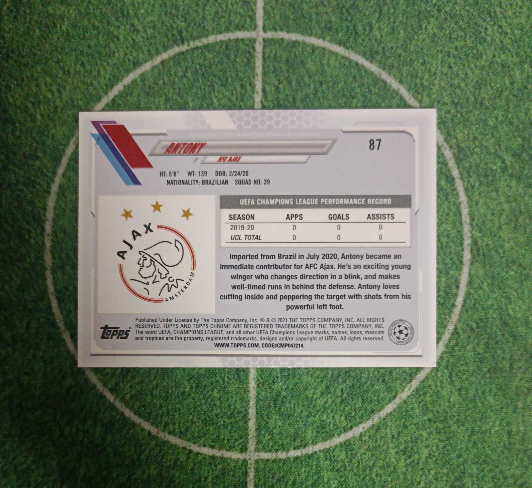 2021 Topps Chrome Antony RC 欧冠 蓝宝石 阿贾克斯 安东尼 新秀RC 曼联 皇家贝蒂斯 巴西 碎冰 状态火热 收藏必备 卡品如图