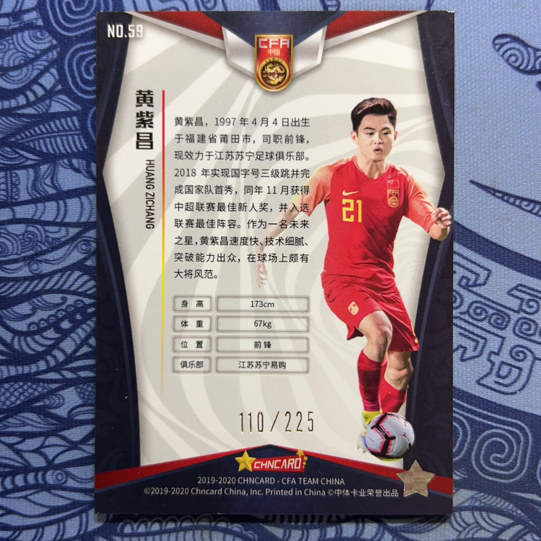 黄紫昌 2019-2020 中体卡业 CHNCARD 限量带编 225编 折射 不保卡品 介意勿拍 中国足球国家队 厚卡