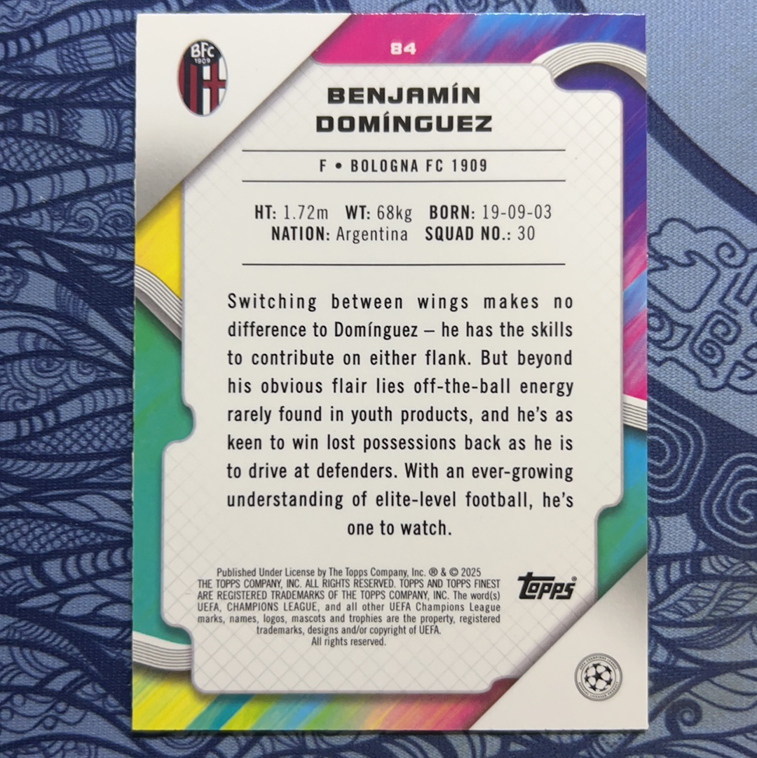 2024-25 Topps Finest Benjamin Dominguez RC RC 新秀 本杰明 多明戈斯 阿根廷 博洛尼亚 Base 299编 紫折 UEFA 欧冠 年轻小妖 未来可期