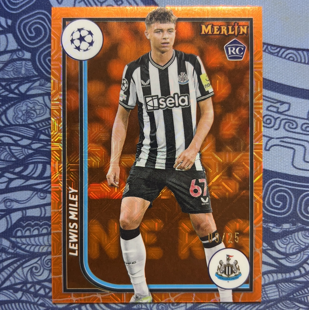 2024 Topps Merlin chrome Lewis Miley RC 欧冠 梅林 纽卡斯尔联 刘易斯 麦利 米利 09/25编 橙折 低编 折射 新秀 卡品如图 带砖