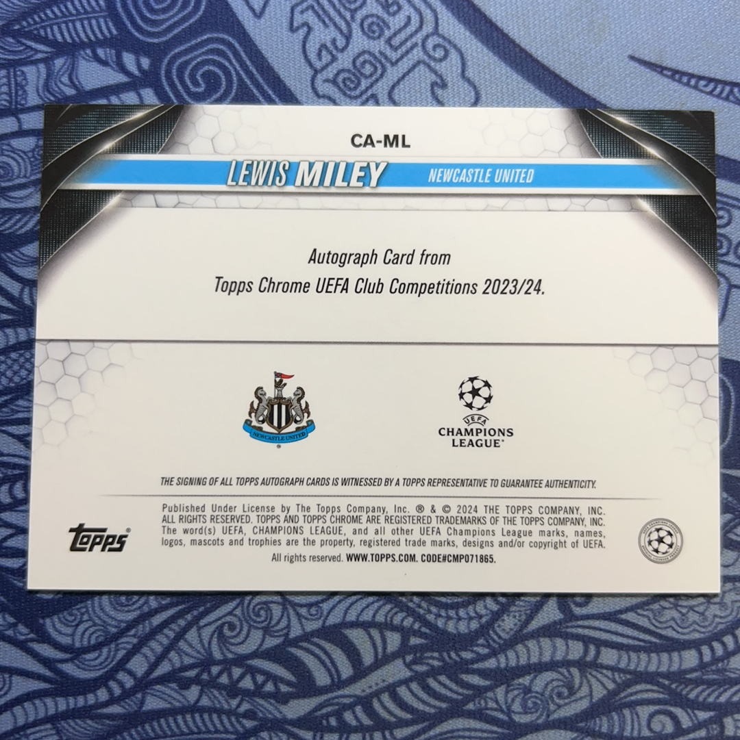 2023 Topps chrome Lewis Miley RC 英超 纽卡斯尔 英格兰 新秀 刘易斯 米利 麦利 签字 蓝折射 正系列 150编 完美墨迹 卡品如图 收藏必备 未来可期