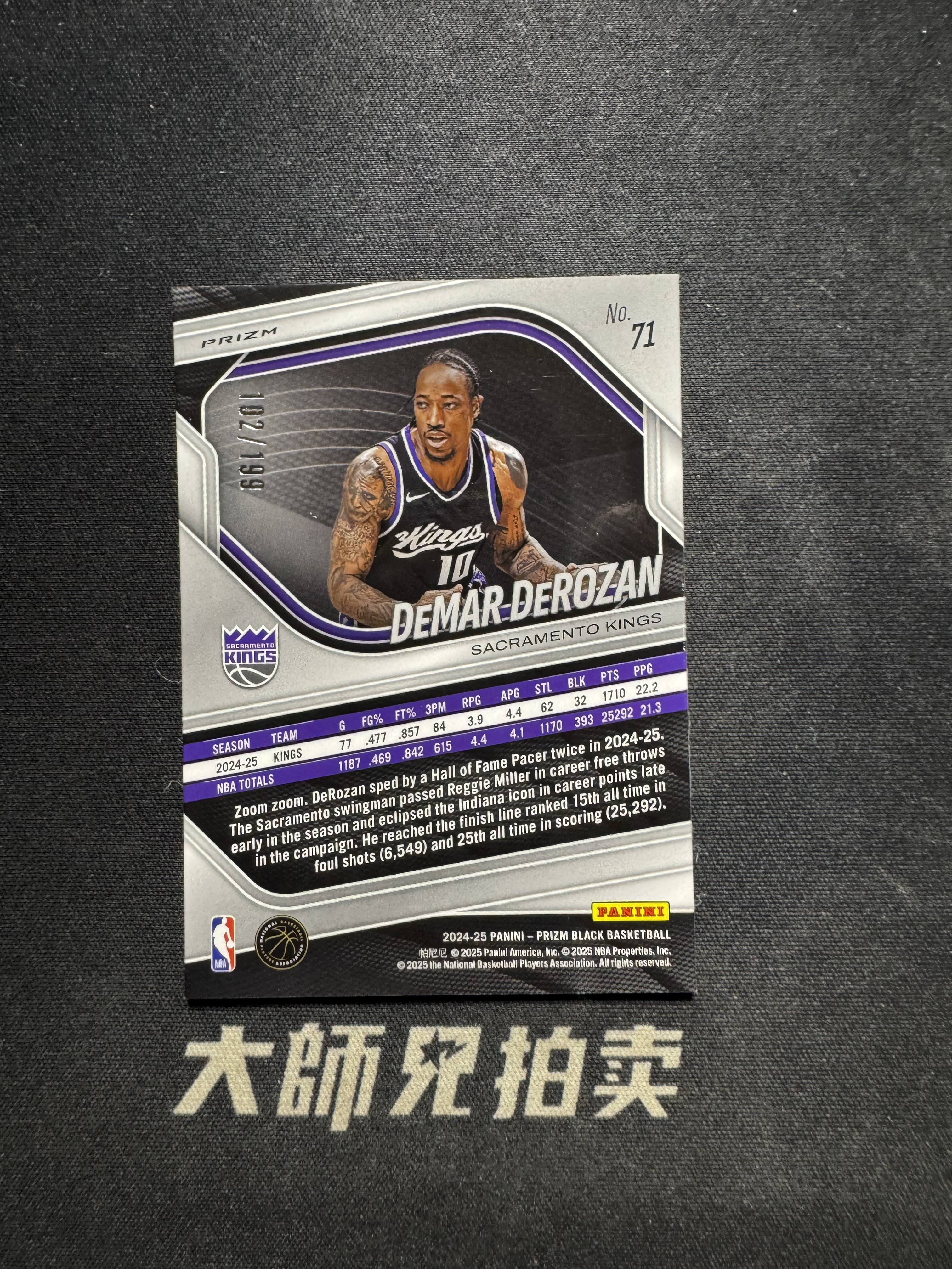 【大师兄拍卖】2024-25 Panini prizm black DEMAR DEROZAN 国王 德玛尔 德罗赞 pz /199编 蓝折 通行品 -发哥-