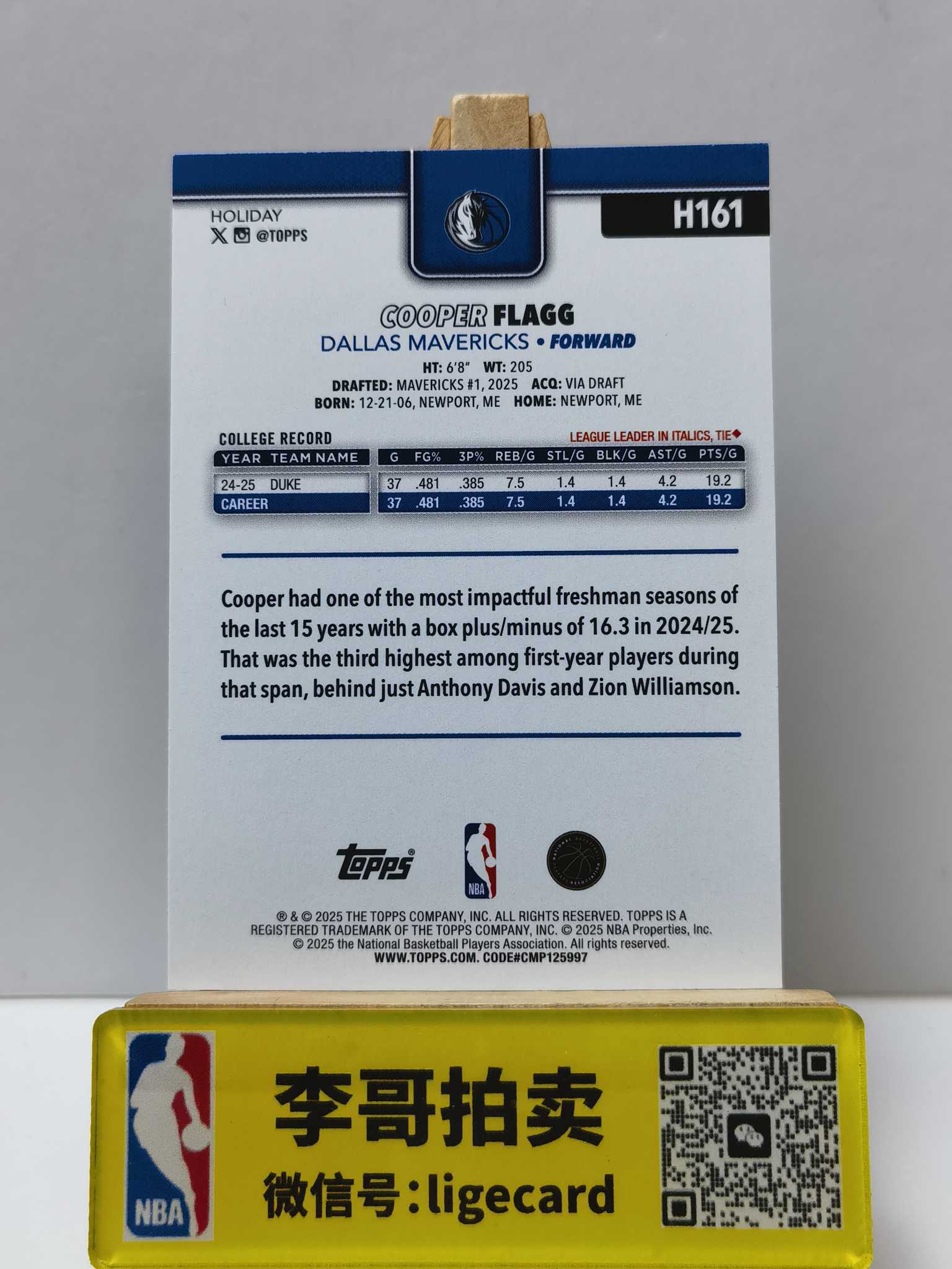 2024 Topps Holiday Cooper Flagg 【李哥代卖】库珀弗拉格 RC新秀 独行侠 base samson