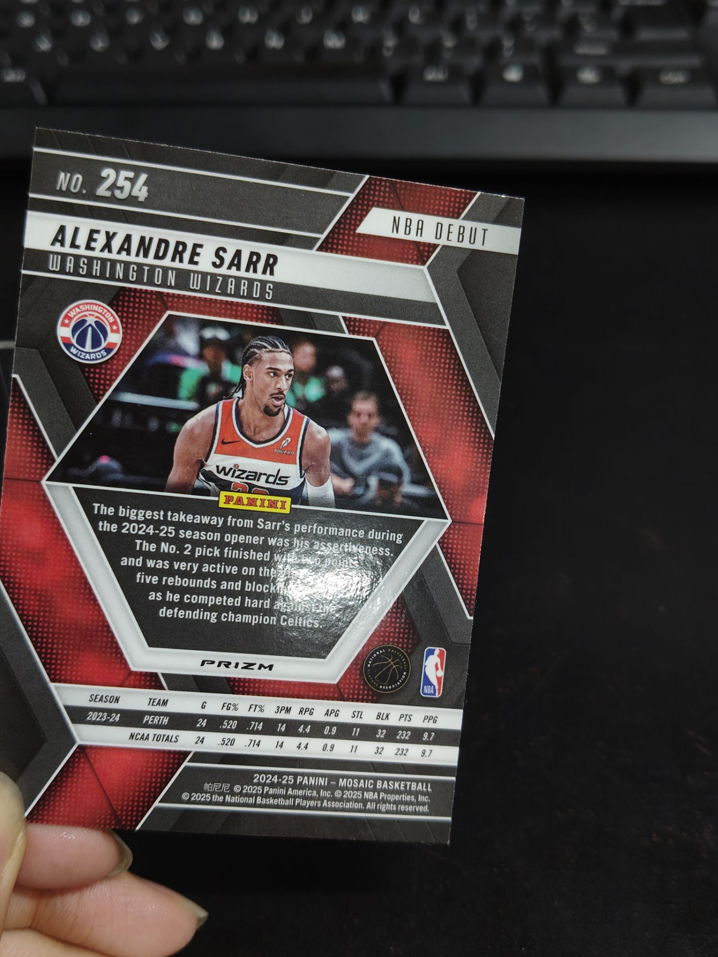 【浩行拍卖 截标预付82%】2024-25 panini mosaic Alexander sarr 马赛克 奇才 亚历山大 萨尔 新秀 rc 红马赛克折 折射 专收必备 瑕疵看图「梁怀」1122M01夢