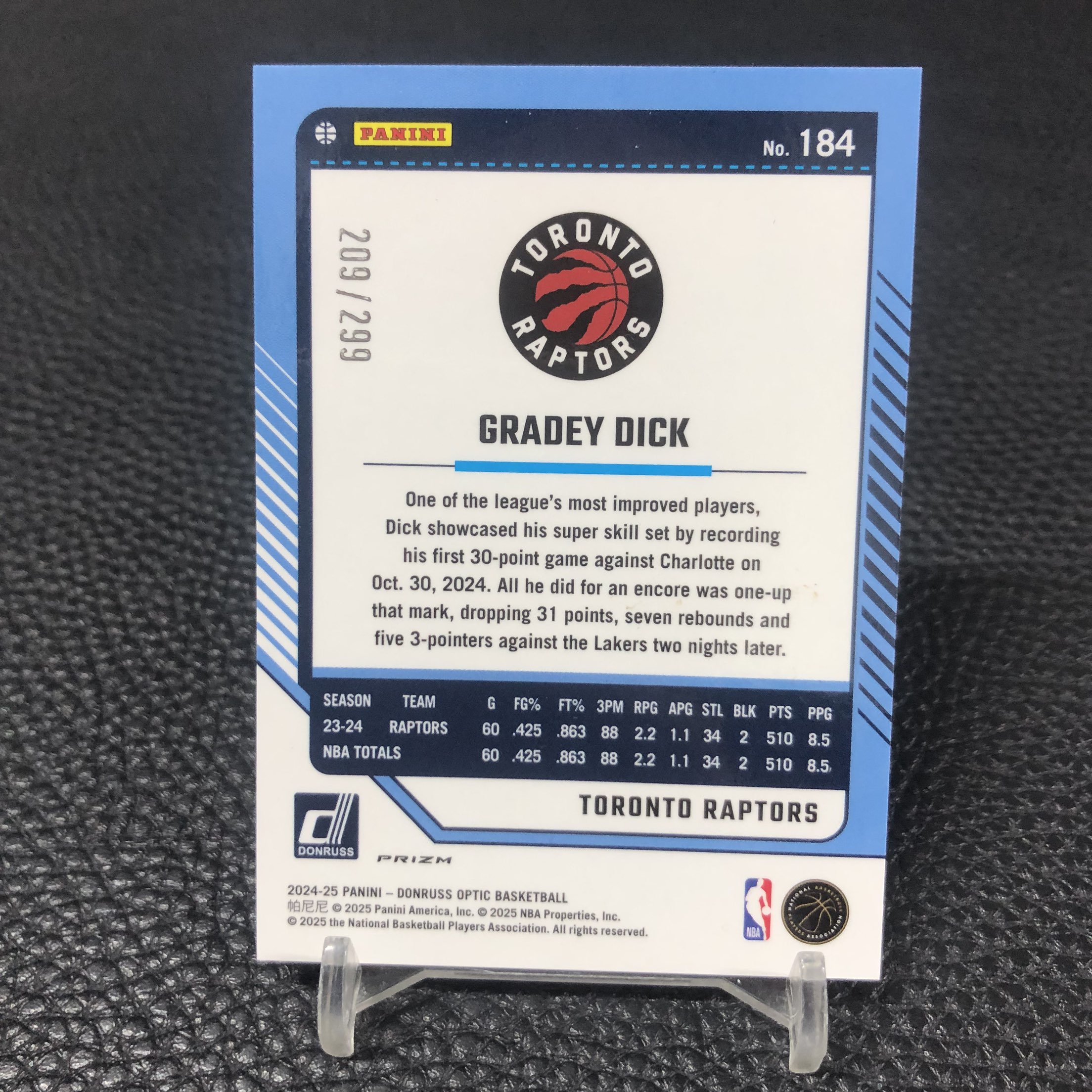 【浩行拍卖 截标预付82%】2024-25 panini donruss optic gradey dick 杜蕾斯 猛龙 格雷迪 迪克 橙龙鳞折 折射 209/299编 专收必备 瑕疵看图「寻梅」1122J01驡