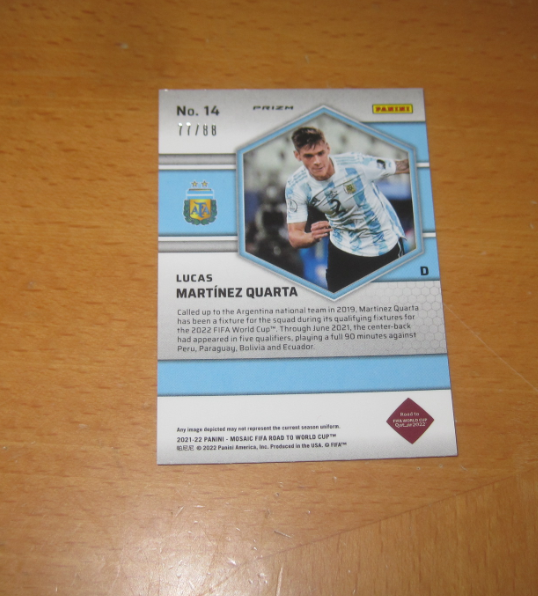 2021-22 Panini Mosaic Lucas Martinez Quarta 【hurrylin拍卖】 帕尼尼 马赛克 世界杯 球星卡 限量 88编 RC 阿根廷 夸尔塔 极微小瑕疵品相如图