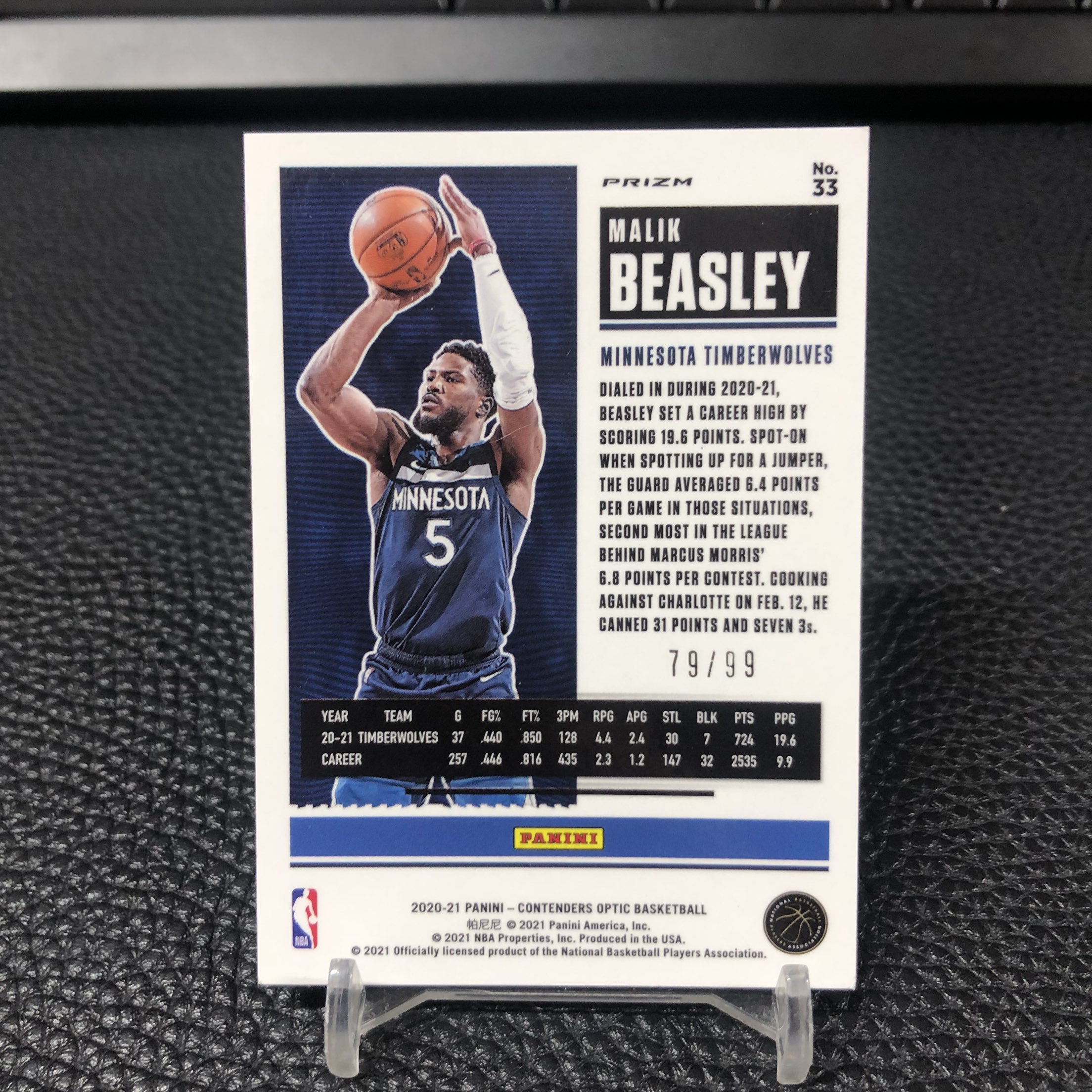 【浩行拍卖 截标预付82%】2020-21 panini contenders optic malik beasley 球票 森林狼 马里克 比斯利 蓝折 折射 79/99编 专收必备 瑕疵看图「寻梅」1122J01驡