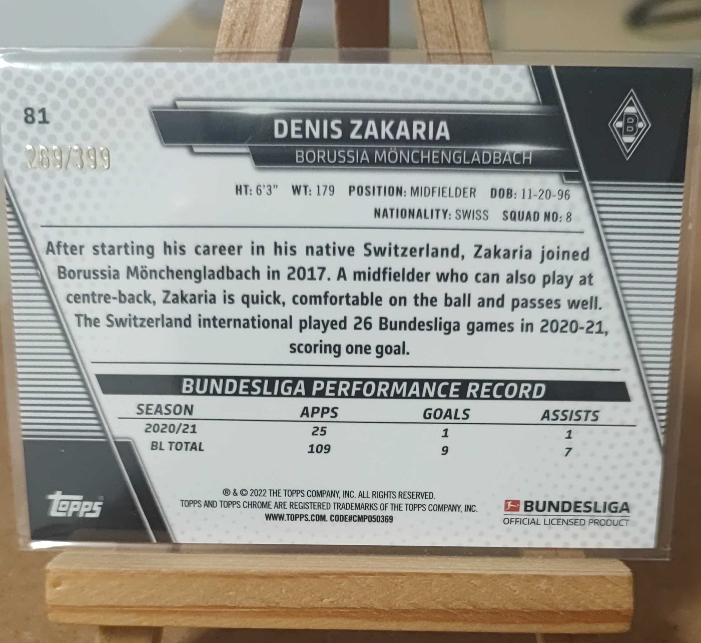2022 Topps Chrome Denis Zakaria 扎卡里亚 399编 摩纳哥 门兴格拉德巴赫 1057