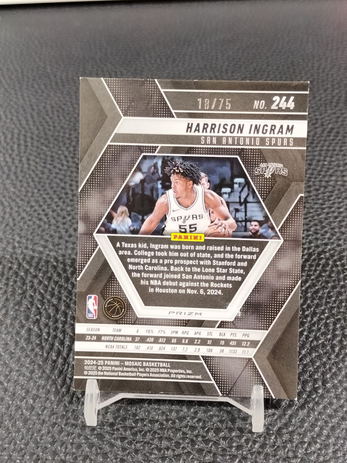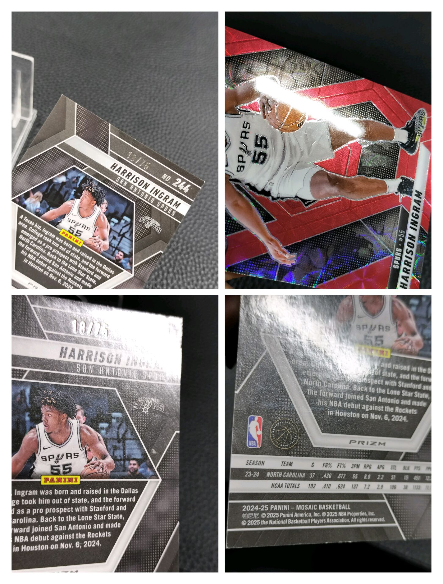 【浩行拍卖 截标预付82%】2024-25 panini mosaic harrison ingram 马赛克 马刺 哈里森 英格拉姆 rc 新秀 红圈圈折 折射 18/75编 专收必备 瑕疵看图「寻梅」1122h01飛