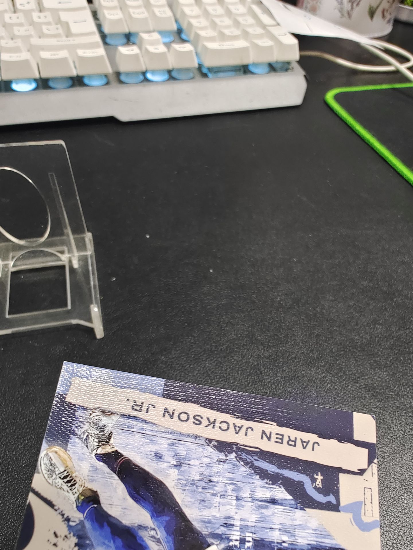 卡品墨迹如图所示,请认真看图后再谨慎出价。不接受任何艺术家买卡,(包括但不限于在通行卡品里挑瑕疵索要赔偿或退卡等)一律拉黑投诉处理。所卖卡未经描述均为通行品,可能会有细微瑕疵;打包标小卡可能会有不同程度的瑕疵;评级卡壳和原封砖的磨损不包含在卡品范围内;交换板和积分只邮寄不发码;介意者请勿参拍!参拍即视为已读同意!