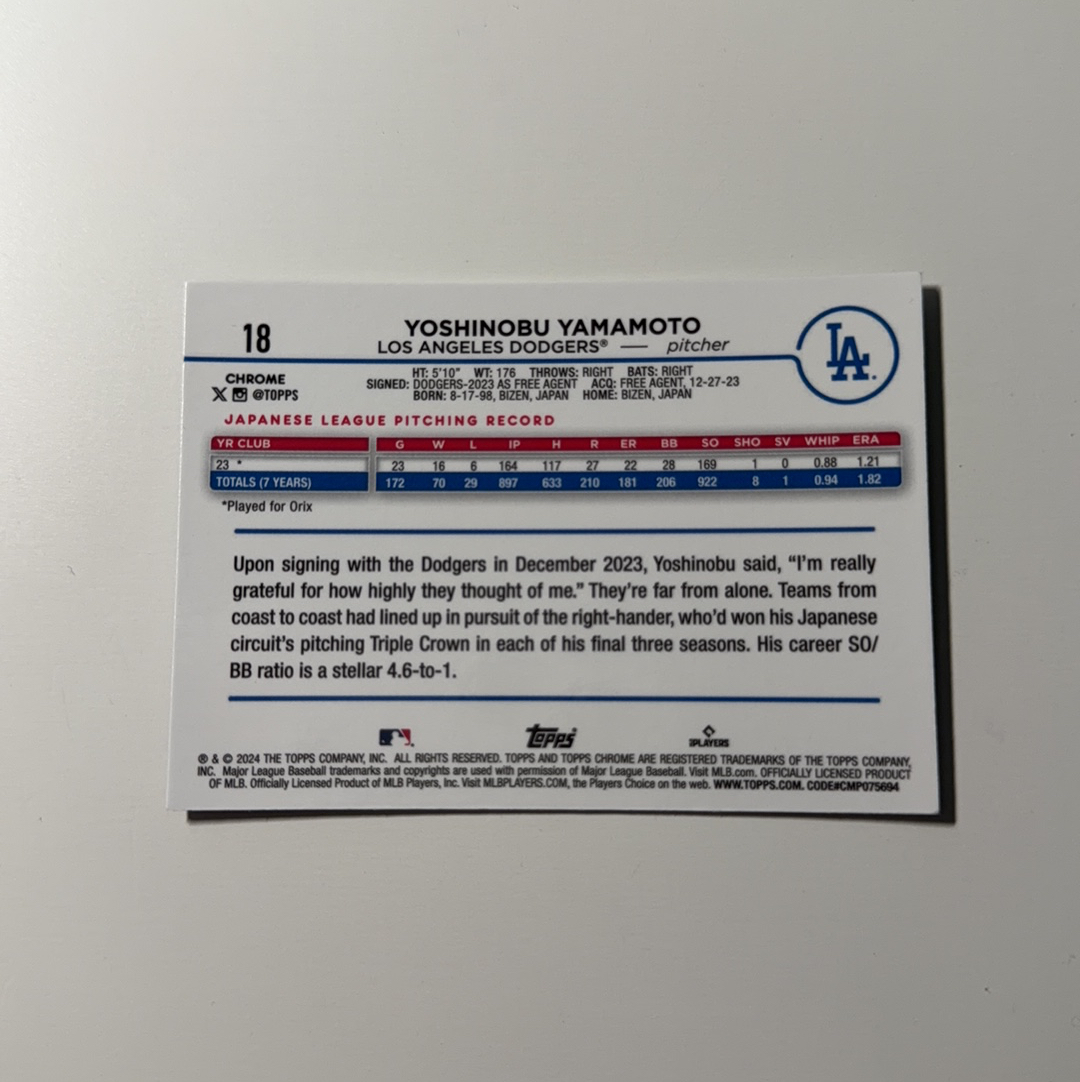 2025 Topps 【锡安代卖】 累计照常 棒球mlb chrome Yoshinobu Yamamoto 山本由伸 新秀 RC 手雷独占底片折 折射 收藏必备 卡品如图 二师兄