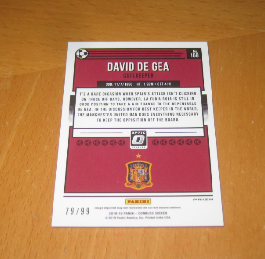 2018-19 Panini Donruss David De Gea 【hurrylin拍卖】帕尼尼 杜蕾斯 O版 元年 球星卡 折射 限量 99编 西班牙 德赫亚 极微小瑕疵 品相如图