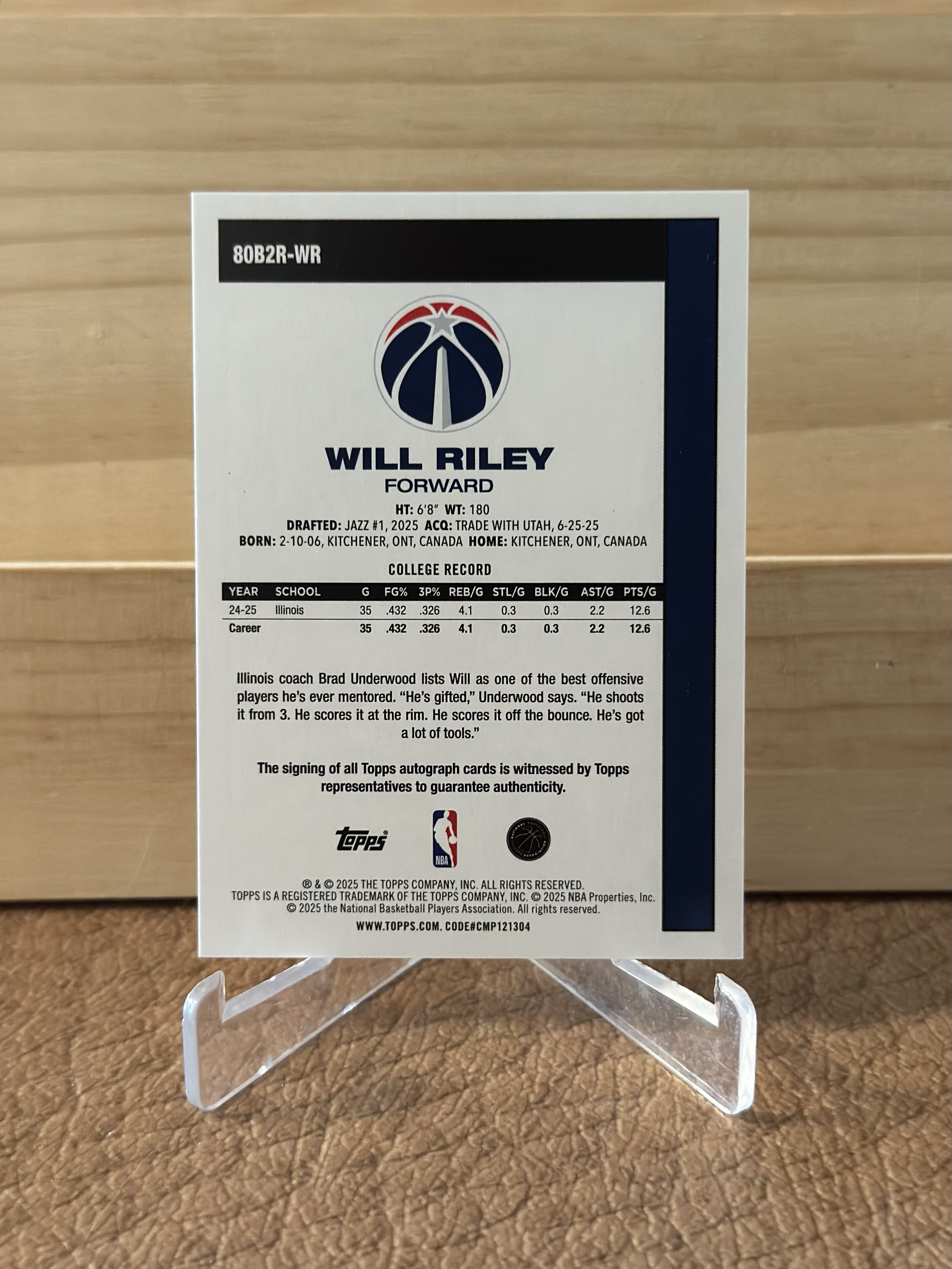 2025-26 Topps flagship Will Riley RC 奇才 新秀 威尔 莱利 45周年 复古 签字 卡签 大比例 新秀签 卡品如图 墨迹如图 收藏必备 投资必备 狼