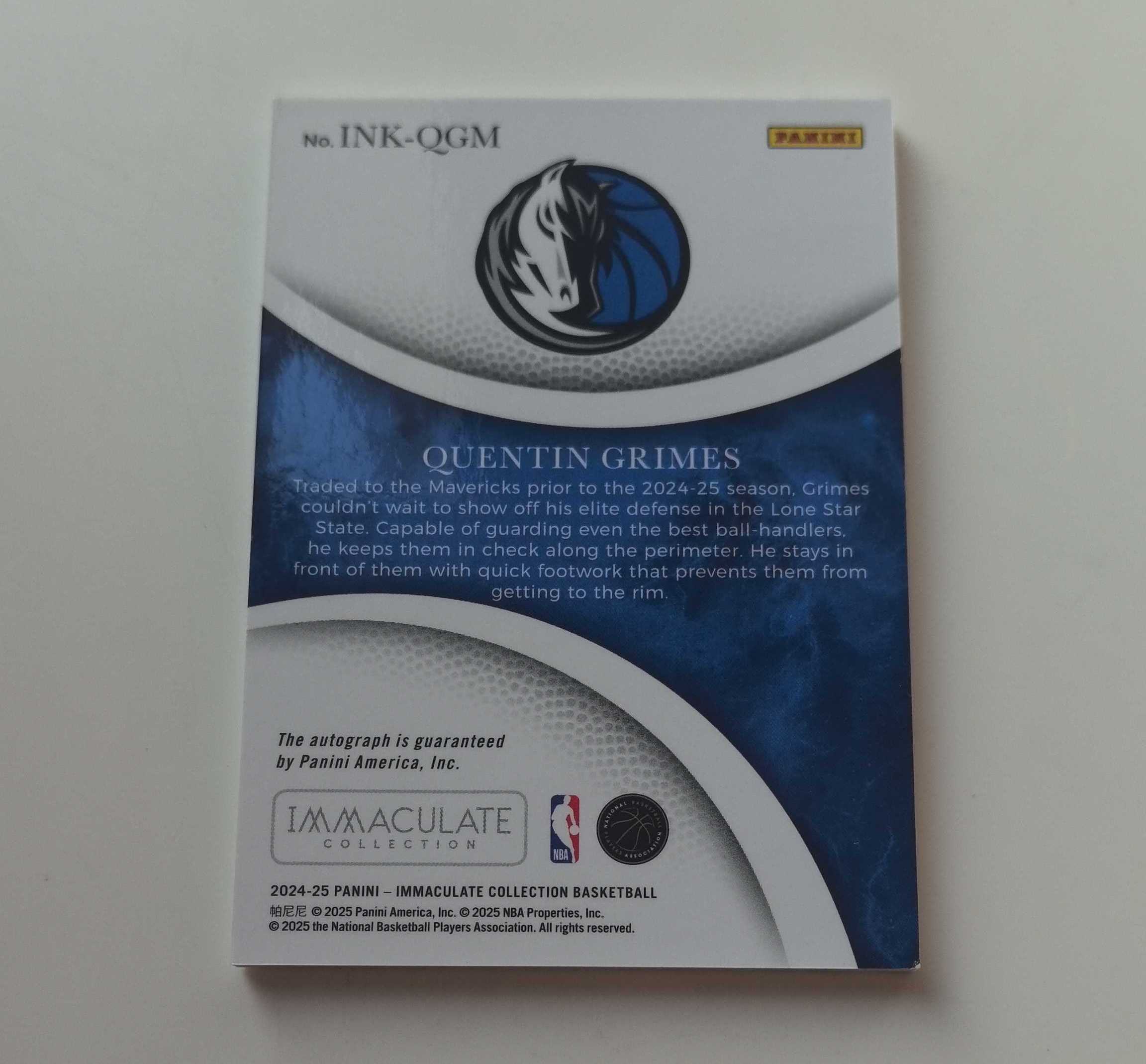 2024-25 Panini Immaculate Quentin Grimes 【旺角拍卖】独行侠 格兰姆斯 签字 卡签 ink签 99编 爱咪咪 chips