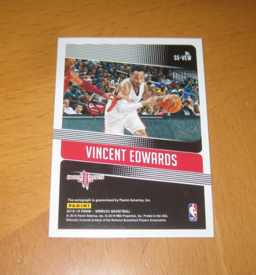 2018-19 Panini Donruss Vincent Edwards 【hurrylin拍卖】 帕尼尼 NBA 球星卡 签字卡 限量 4/5编 火箭 文森特爱德华兹 极微小瑕疵 品相如图