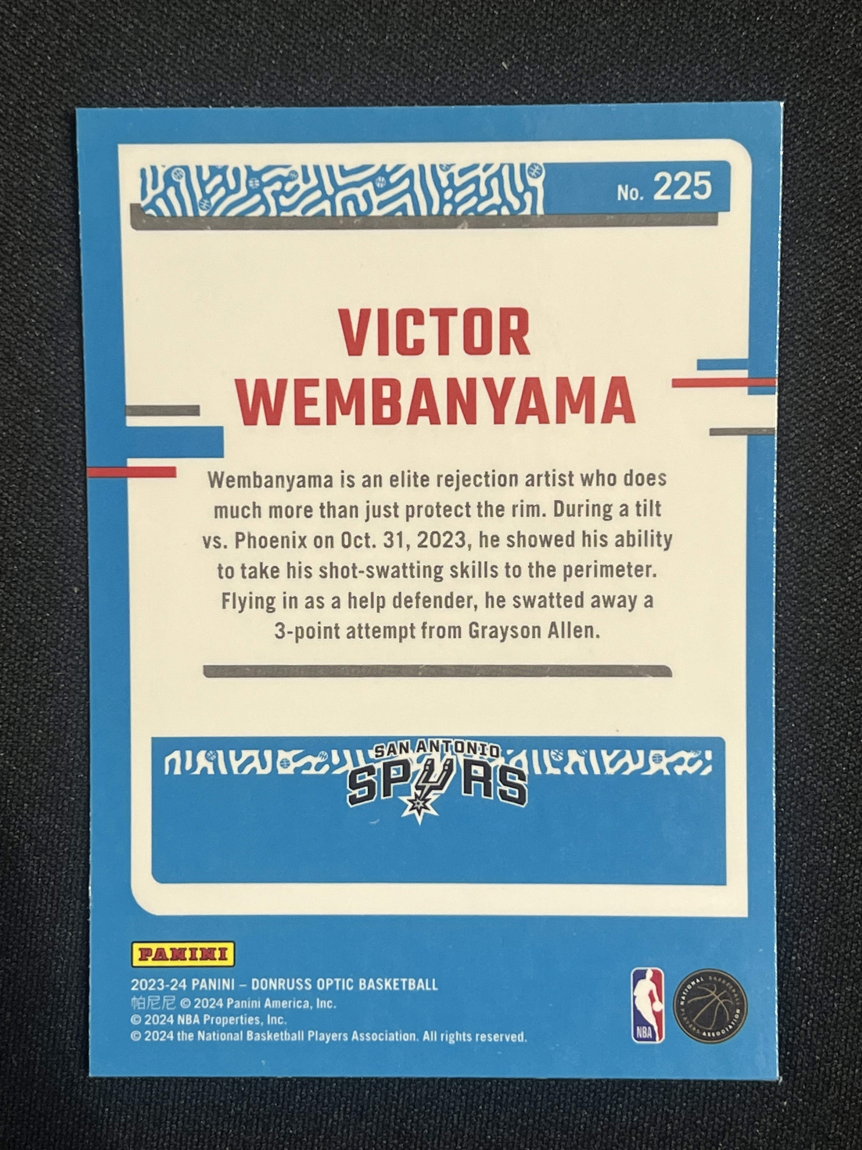 【卡卡星拍卖】2023-24 Panini Donruss Victor Wembanyama RC 杜蕾斯 马刺 维克托 文班亚马 新秀 base 实卡精美 卡品如图 邓