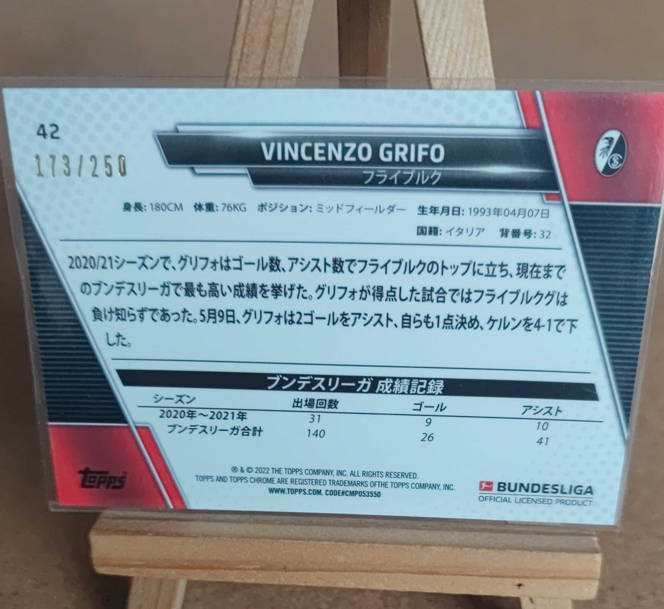 2022 Topps Chrome Vincenzo Grifo 格里弗 250编 德甲 弗赖堡 1266