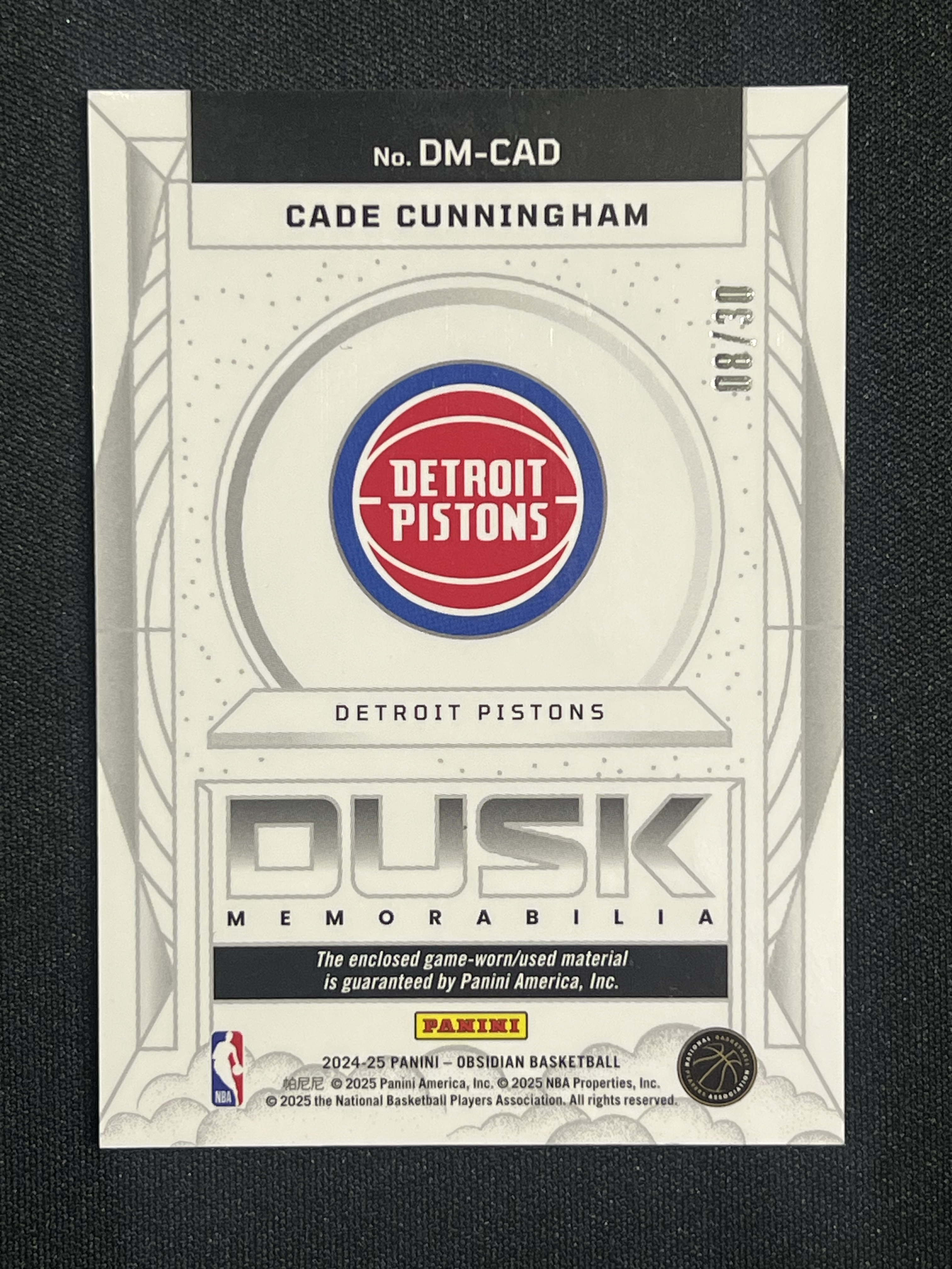 【卡卡星拍卖】2024-25 Panini Obsidian Cade Cunningham 黑曜石 活塞 凯德 康宁汉姆 CC 活塞 30编 物料 暴力切割patch DUSK 卡品如图 user