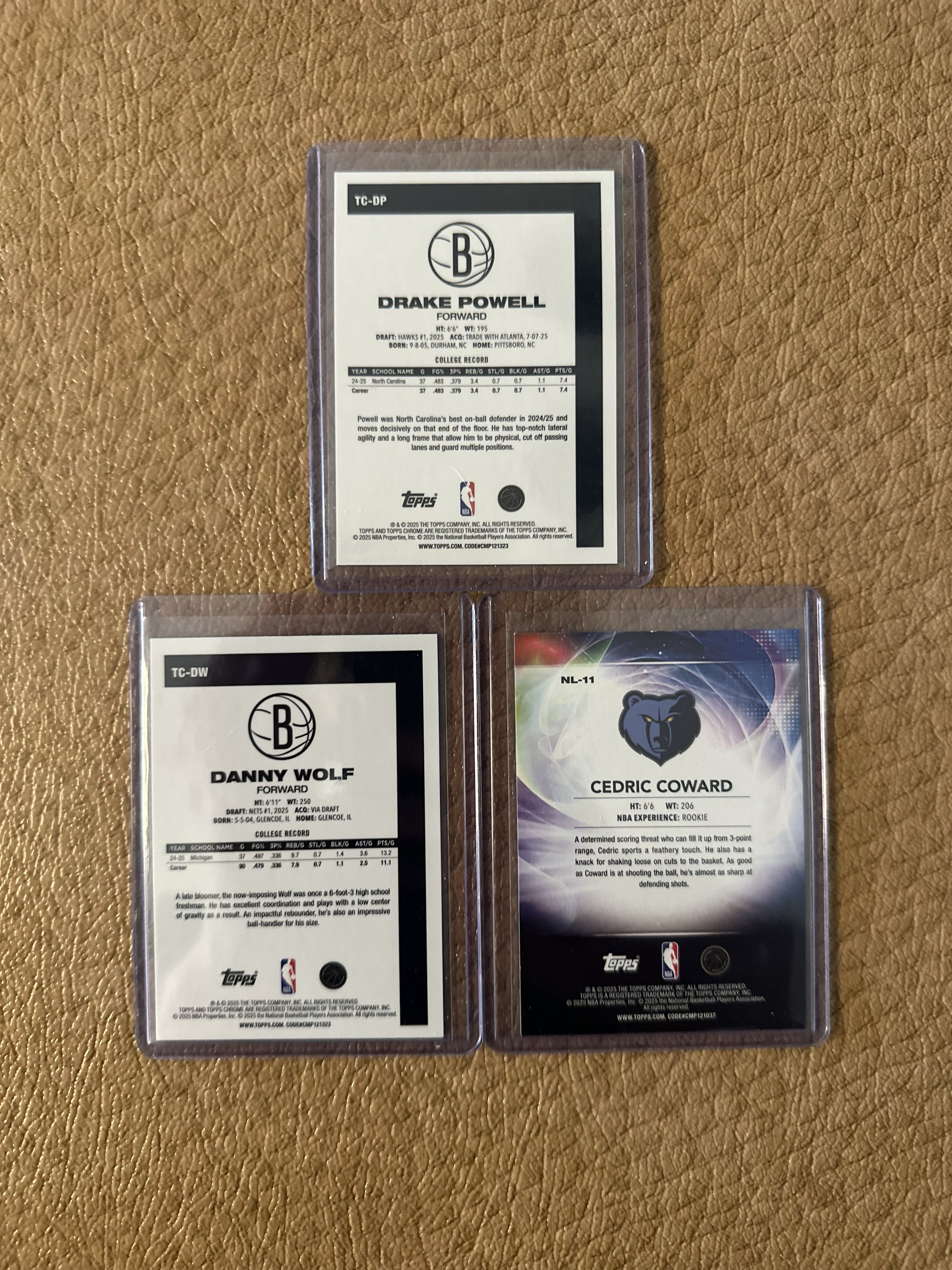 2025-26 Topps flagship Cedric Coward RC 灰熊 考沃德 篮网 鲍威尔 沃尔夫 带队 新秀 折射 蓝折 绿折 99编 150编 250编 Chrome mojo 狼