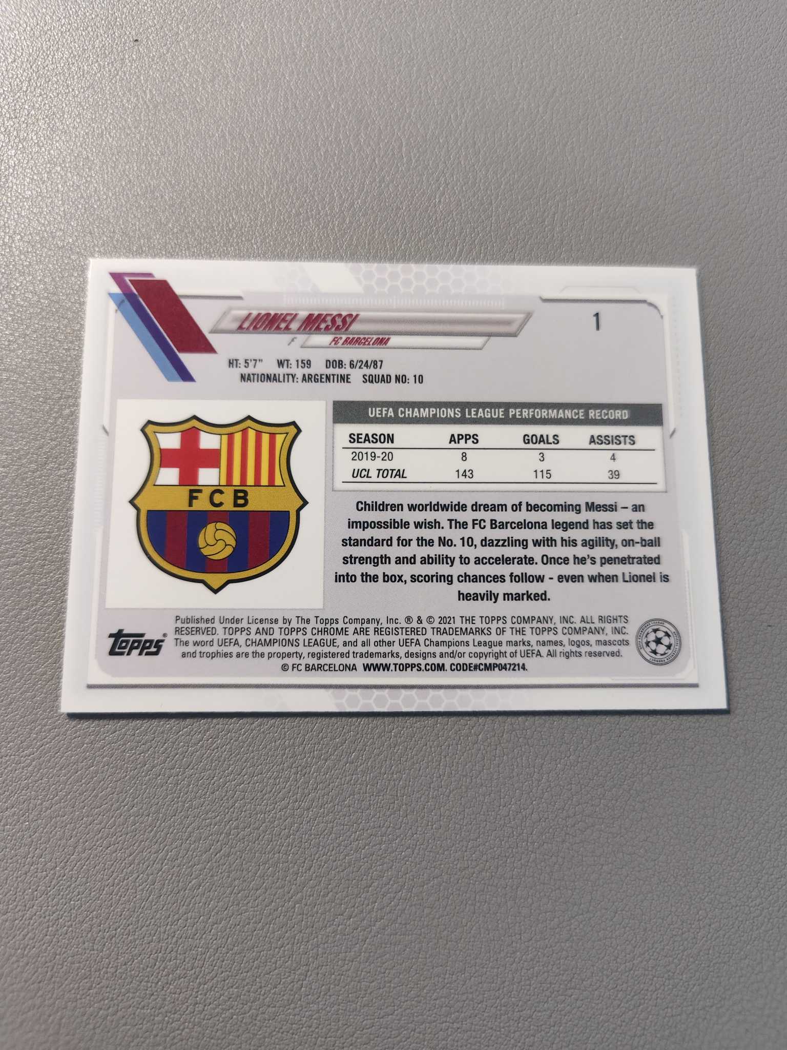 【佩妮拍卖】2021 topps Chrome 欧冠蓝宝石 Lionel Messi 梅西 梅球王 巴萨 阿根廷 大巴黎 迈阿密 阿根廷梅球王 世界冠军 蓝碎冰折 卡品如图 拍前请阅读描述